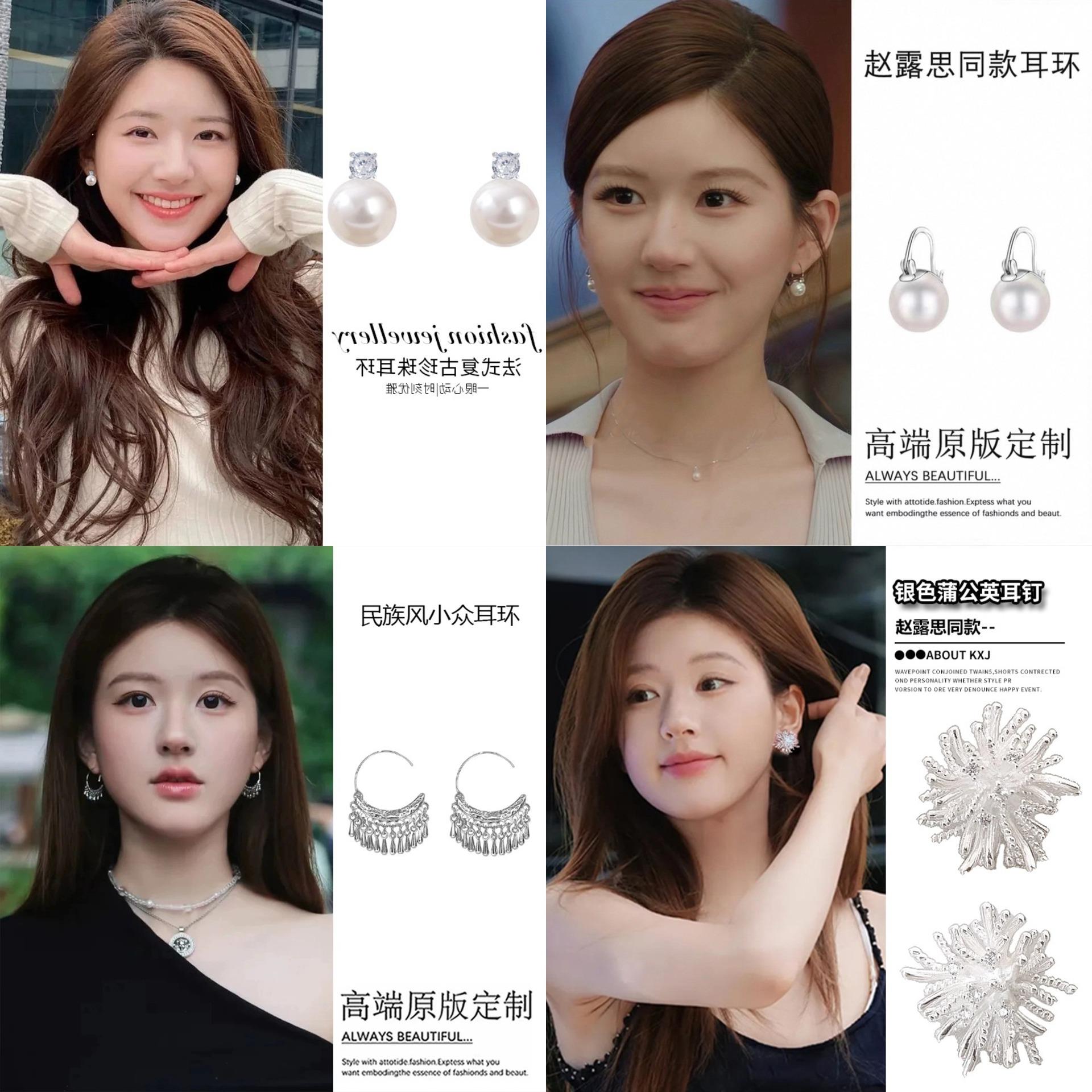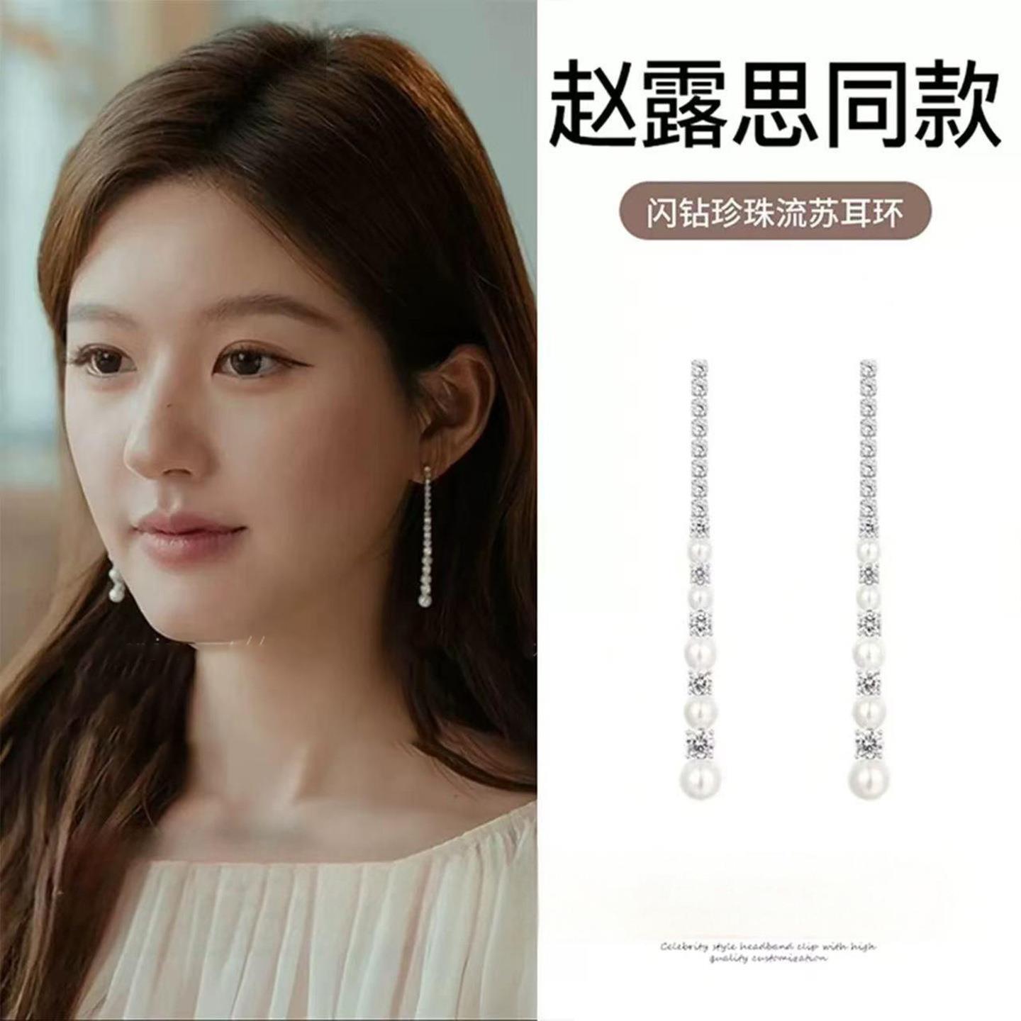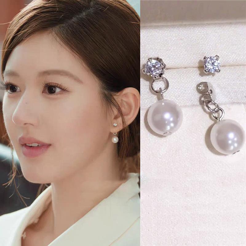 【许我耀眼赵露思同款】银针锆石珍珠耳环轻奢高级感耳钉时尚百搭耳饰