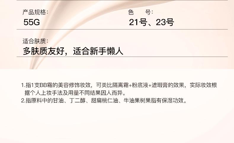 摩肯 水润沁肤BB霜 21号象牙白 50ML