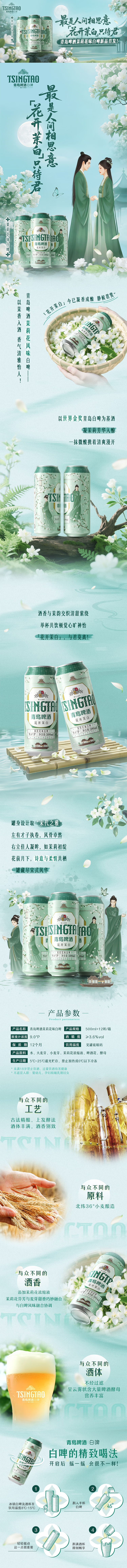 青岛啤酒(TsingTao)茉莉花味白啤 500ml*12听 整箱装 新品发售