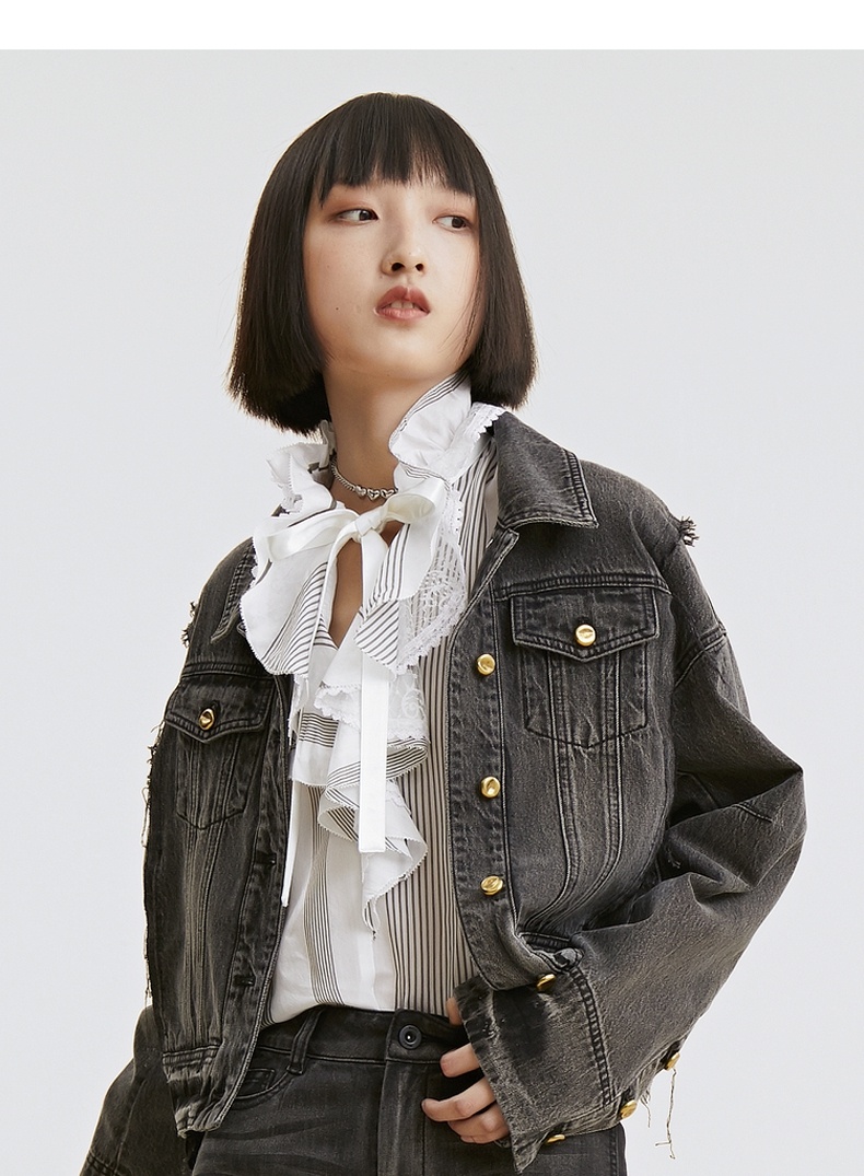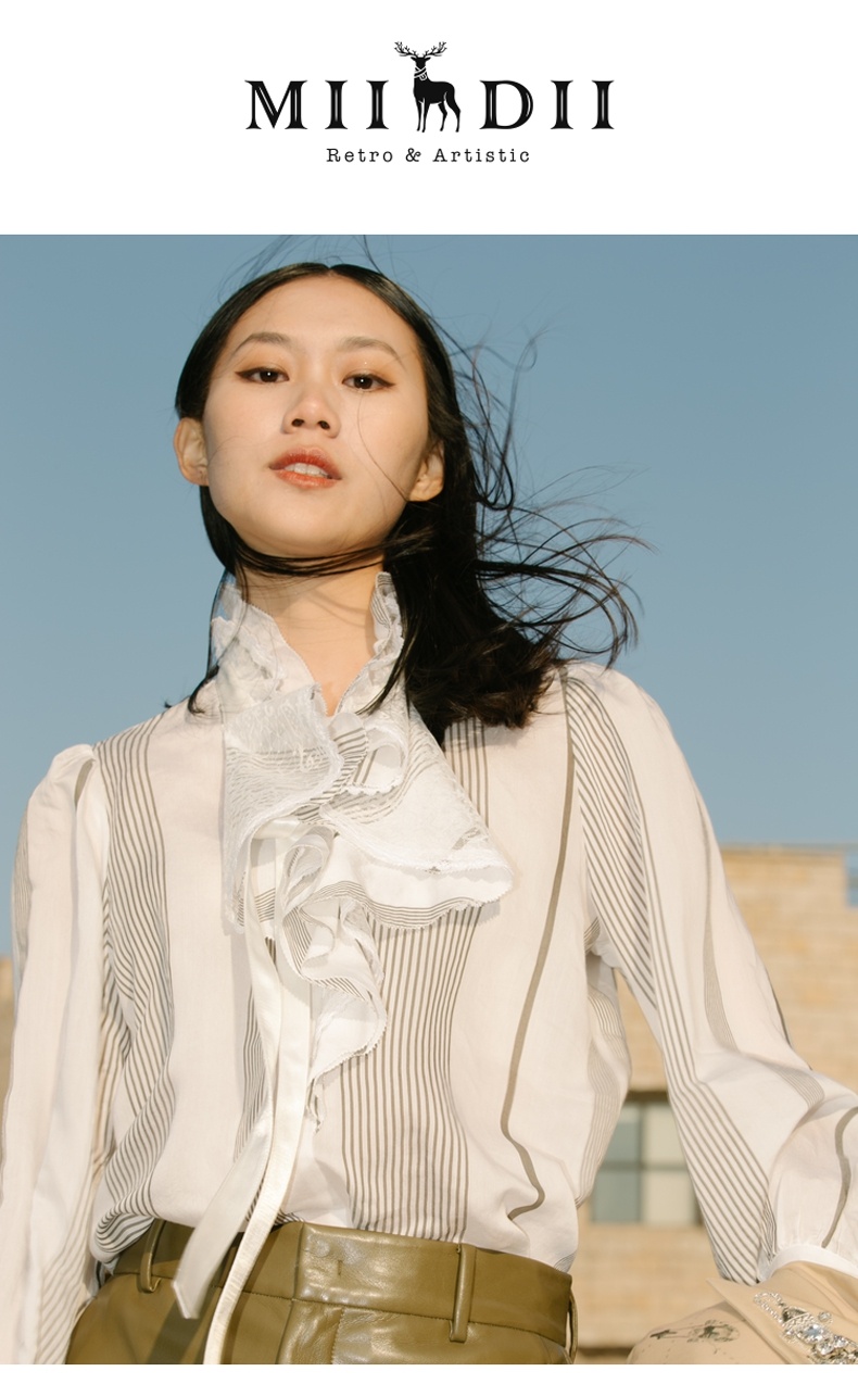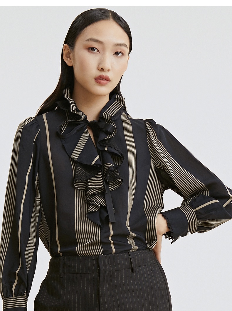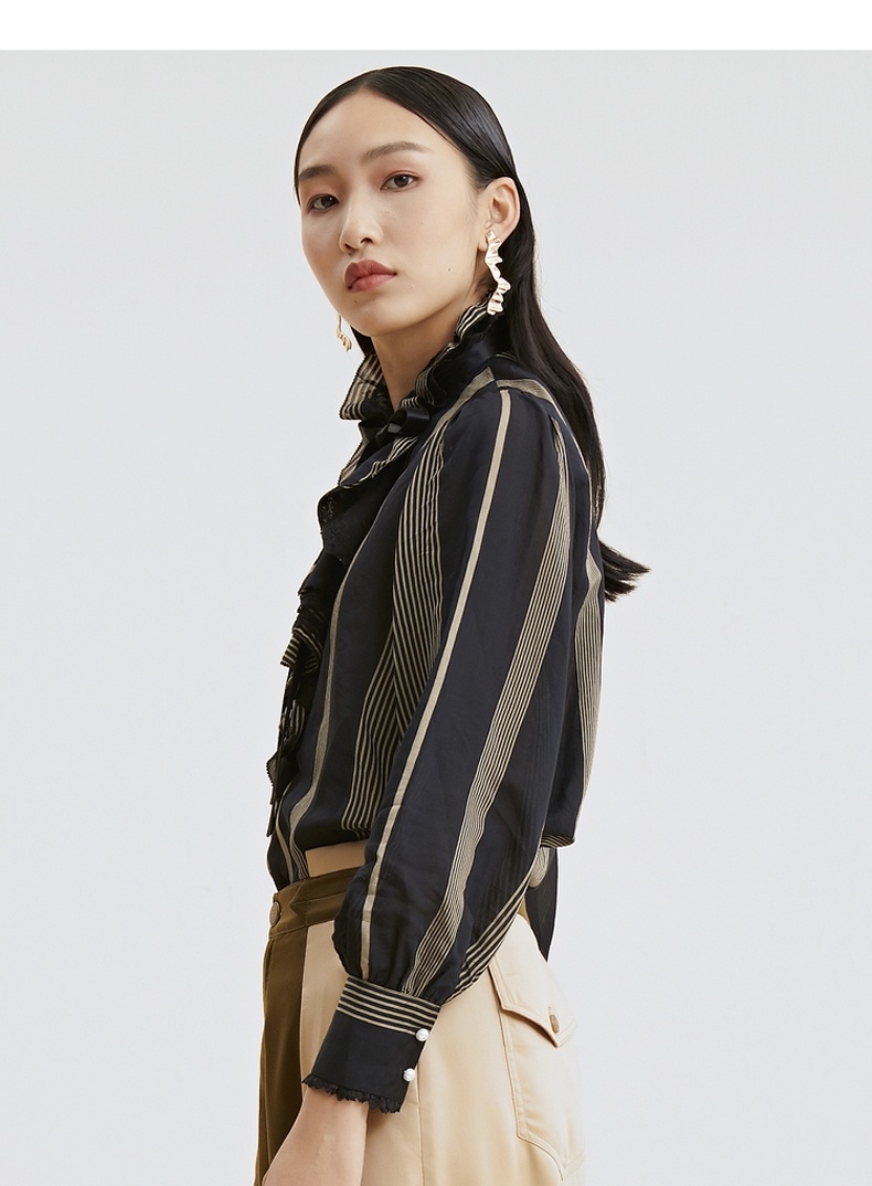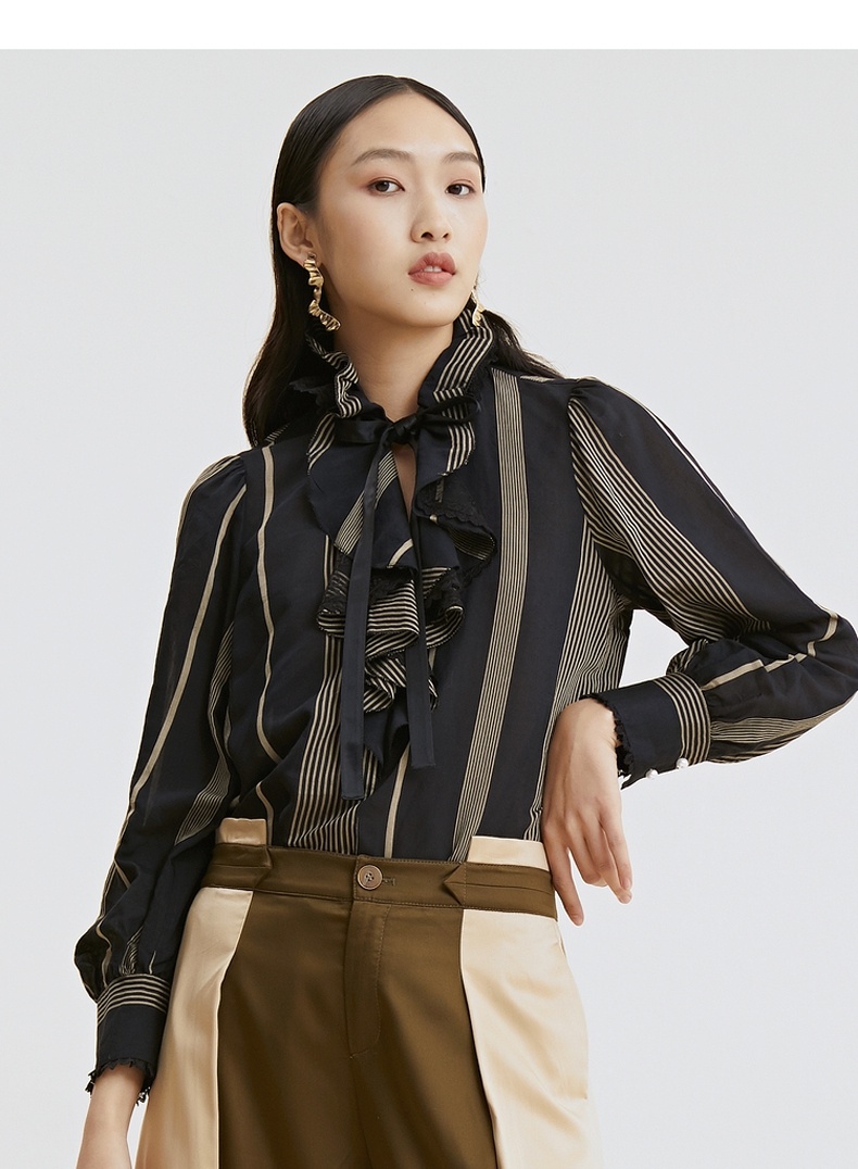 谜底衬衫2021秋季新款复古优雅宫廷荷叶领长袖上衣女213GS1773