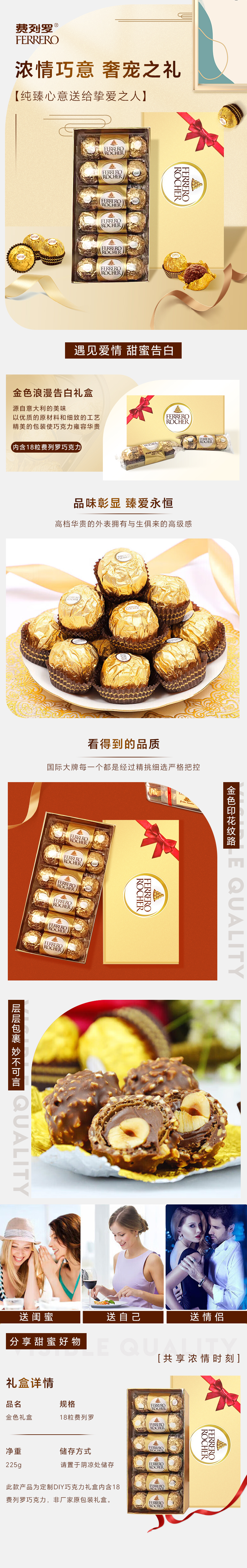费列罗18粒金色经典DIY礼盒225g