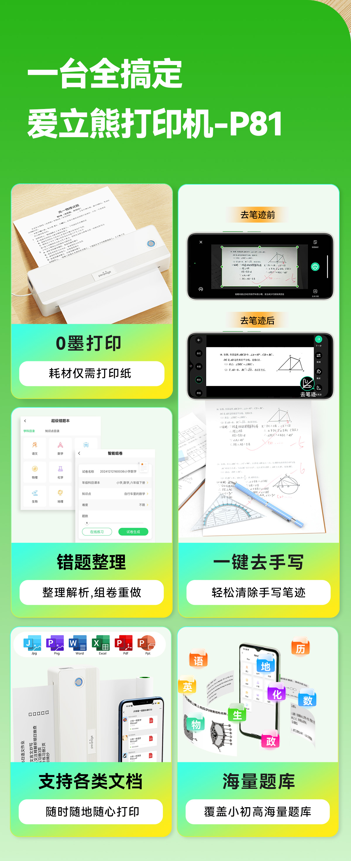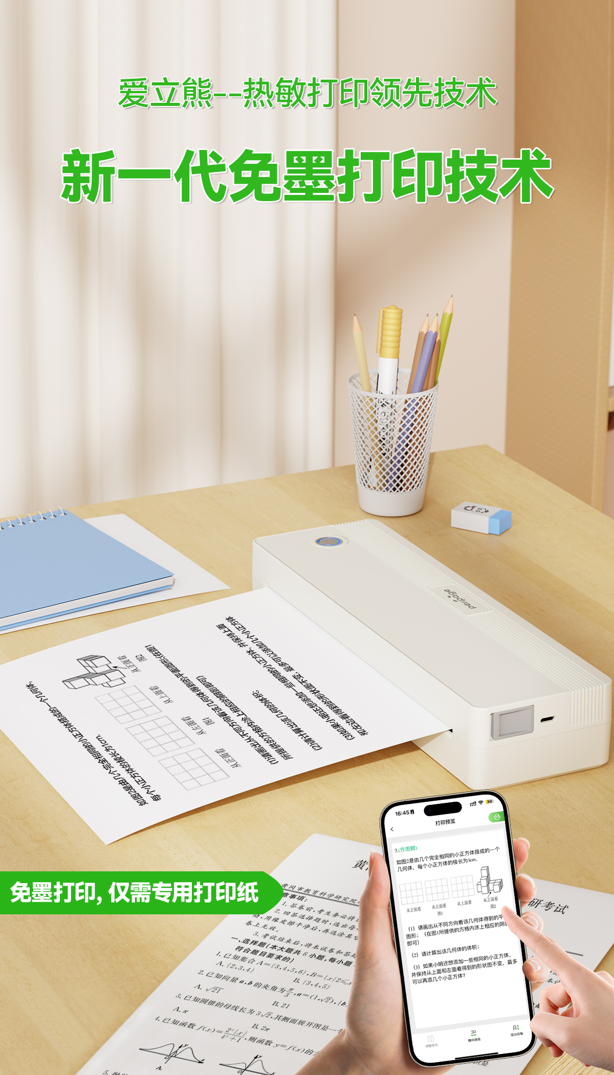【限时赠送105张打印纸】爱立熊A4免墨打印机P82