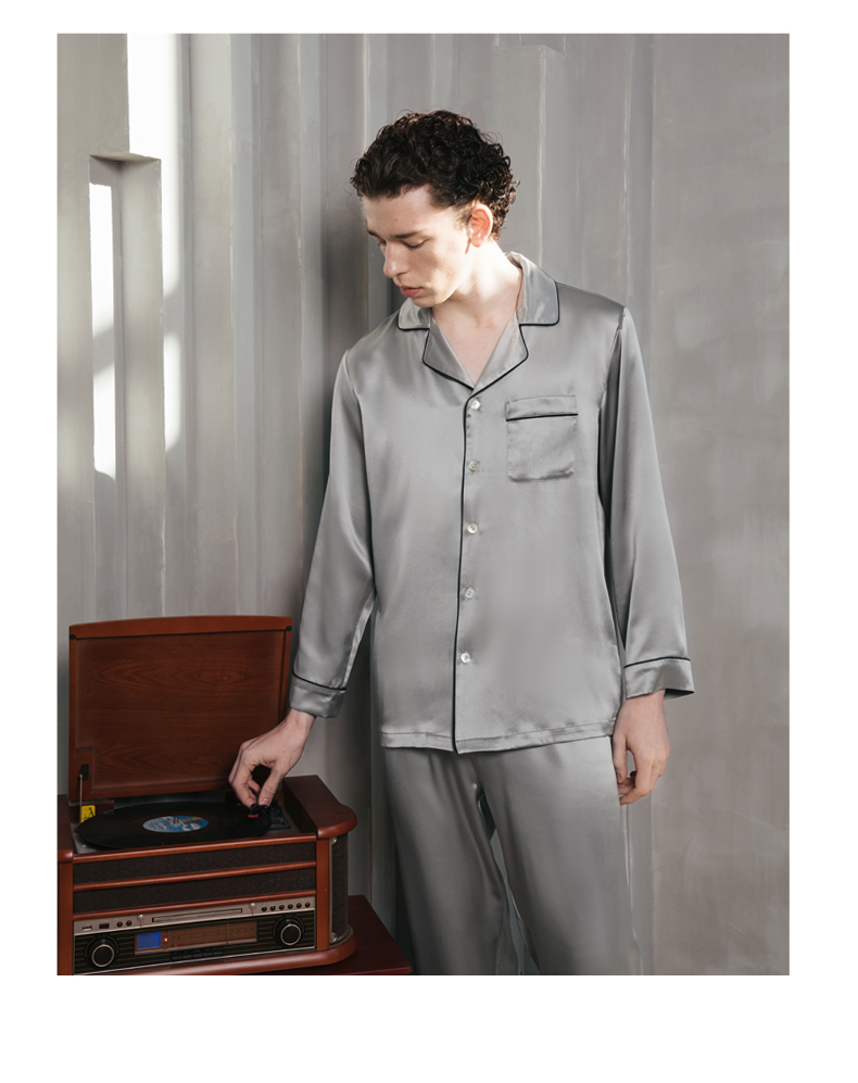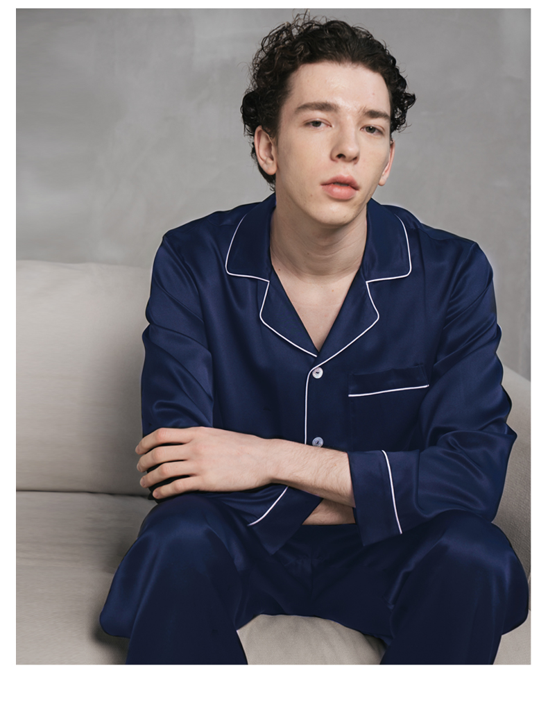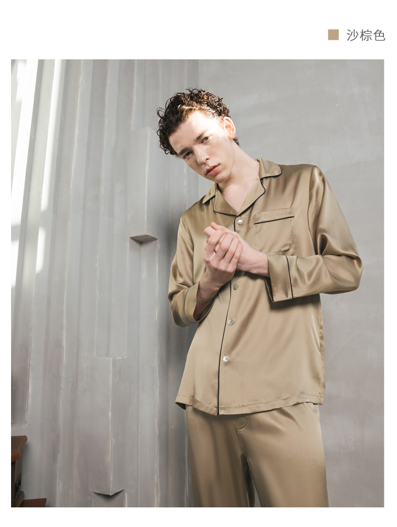 Solo seta22姆米重磅真丝男士睡衣套装桑蚕丝家居服2025秋冬