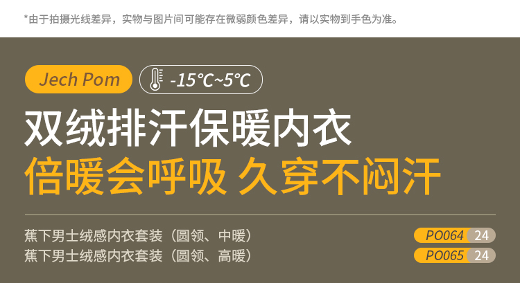 蕉下男士绒感内衣套装(圆领、中暖)PO06424