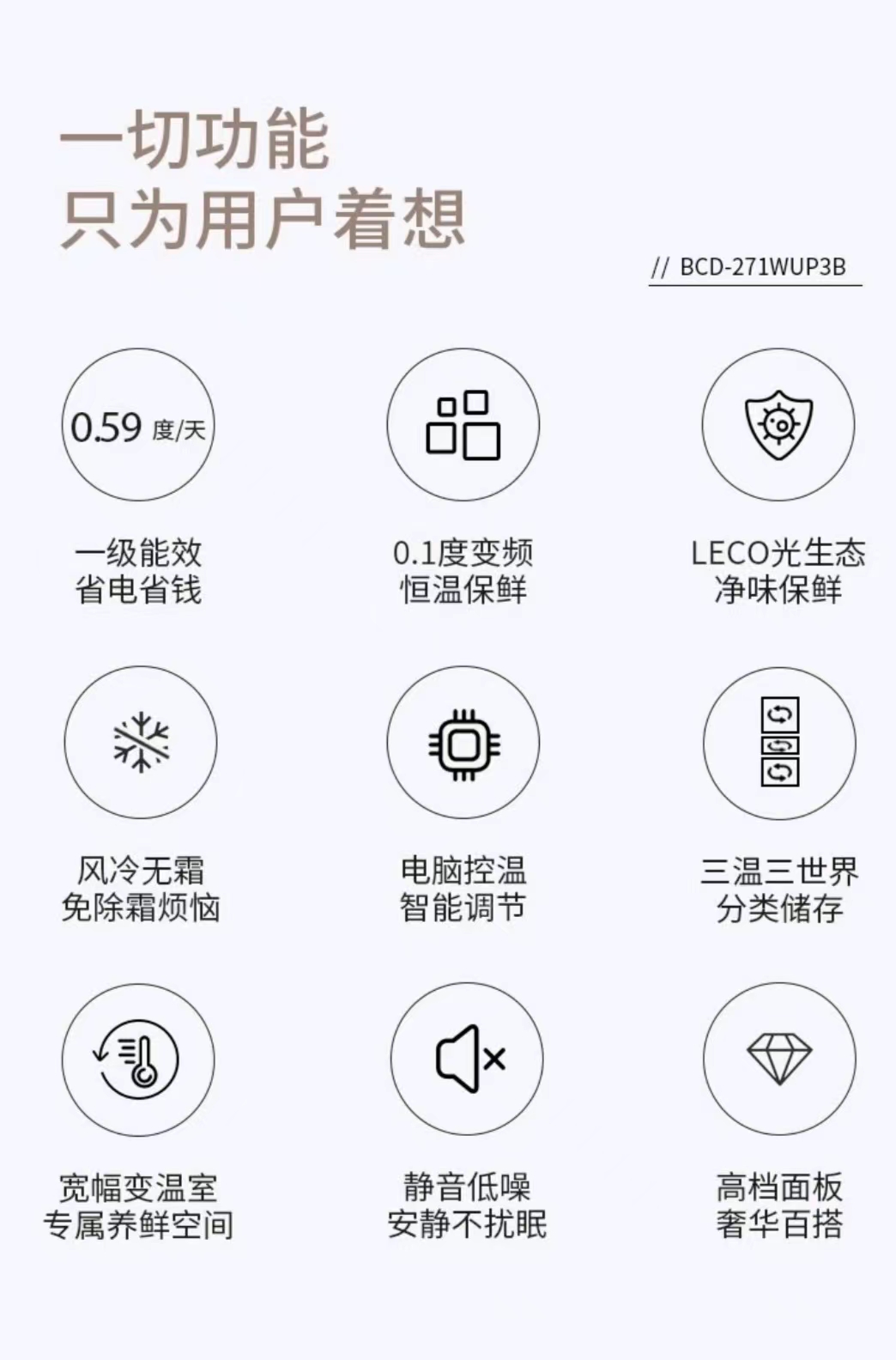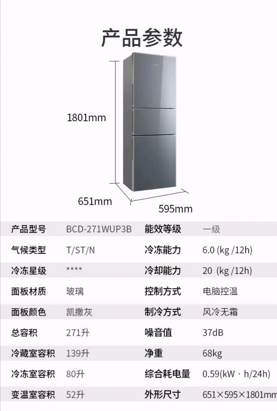 MeiLing/美菱BCD-271WUP3B变频节能风冷无霜家用三门冰箱
