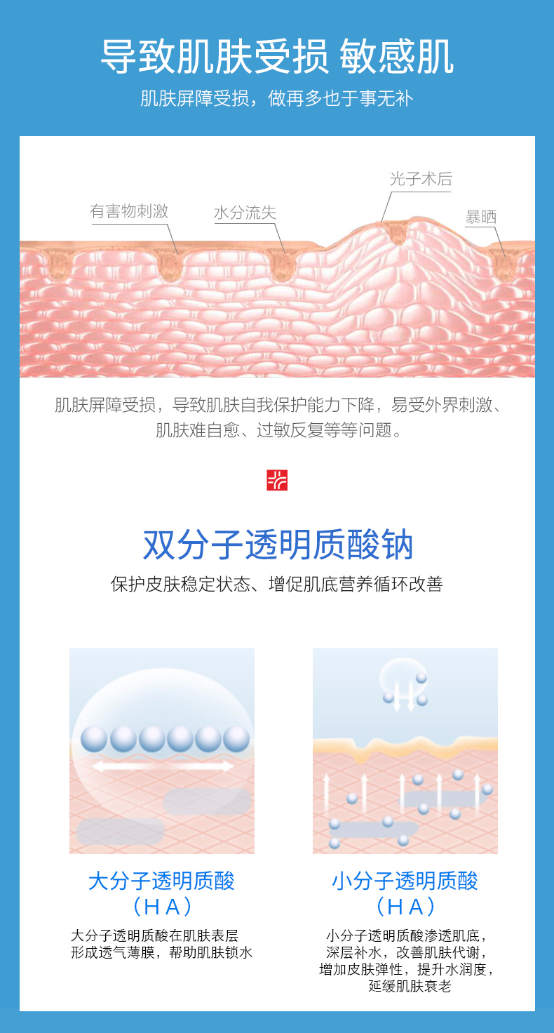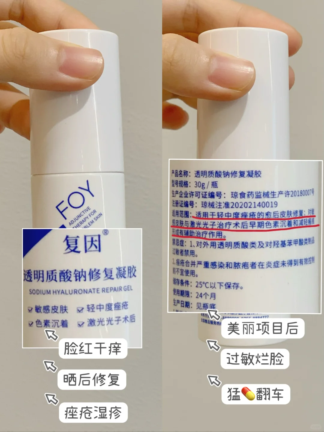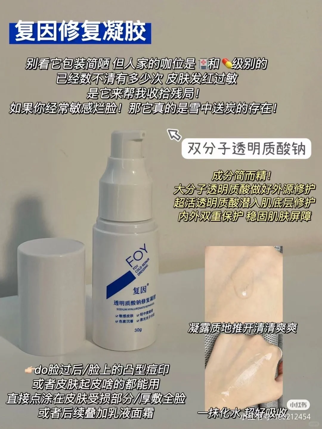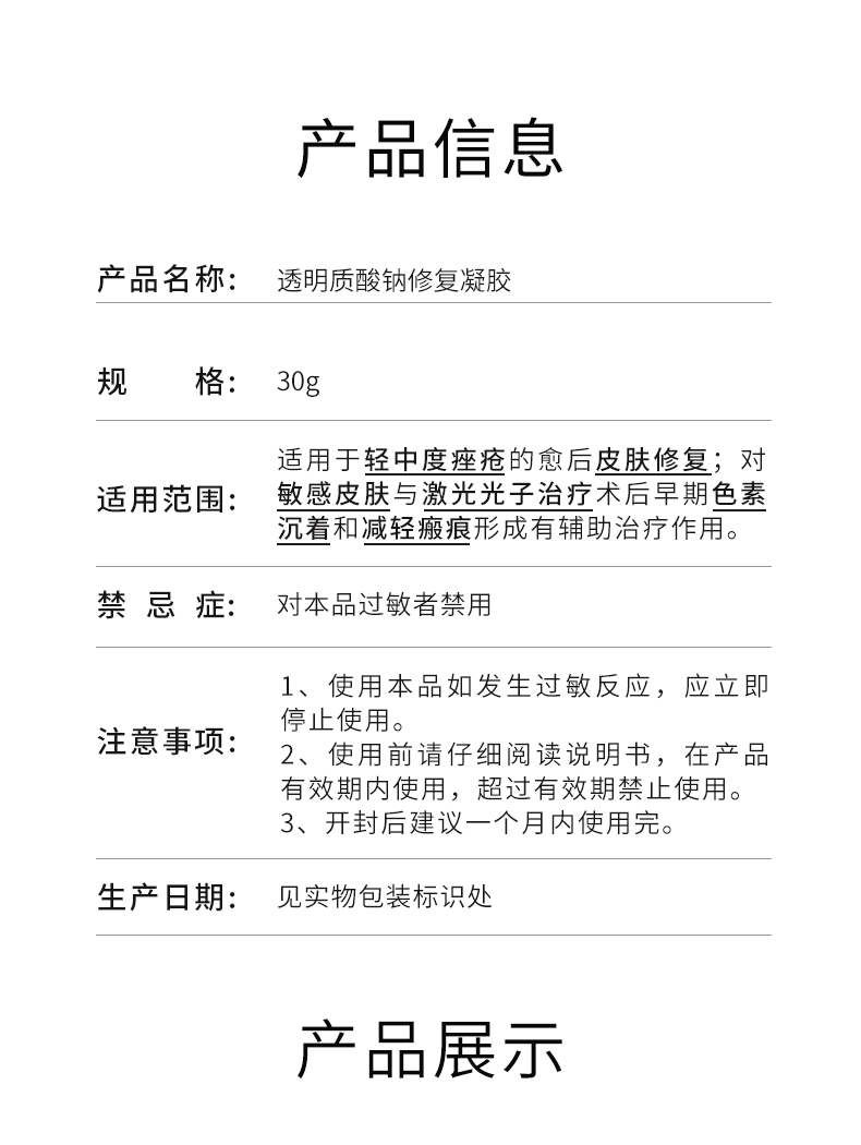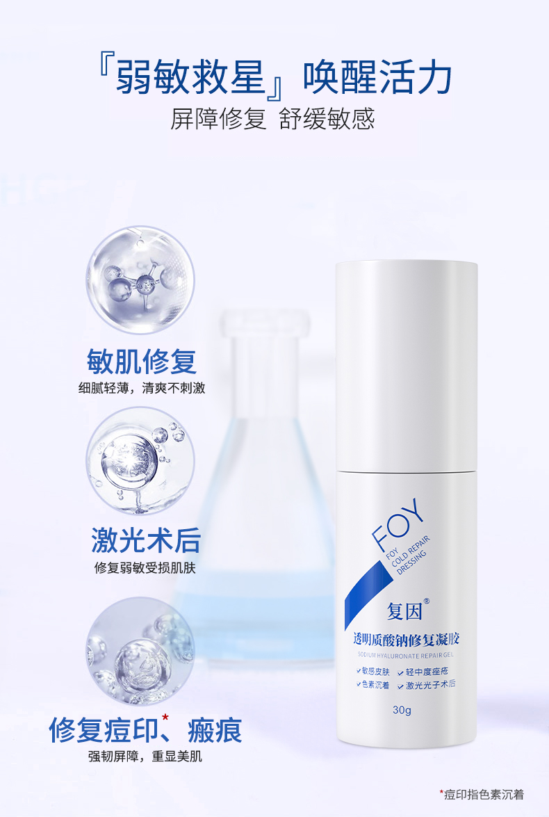 复因医用透明质酸钠修复凝胶:油敏肌;常年痤疮敏肌、屏障脆弱、容易烂脸的姐妹