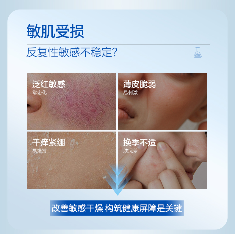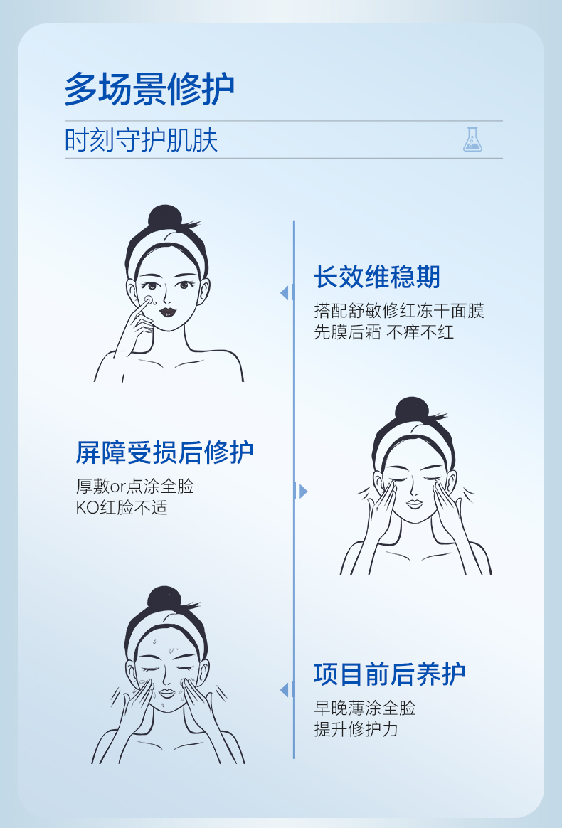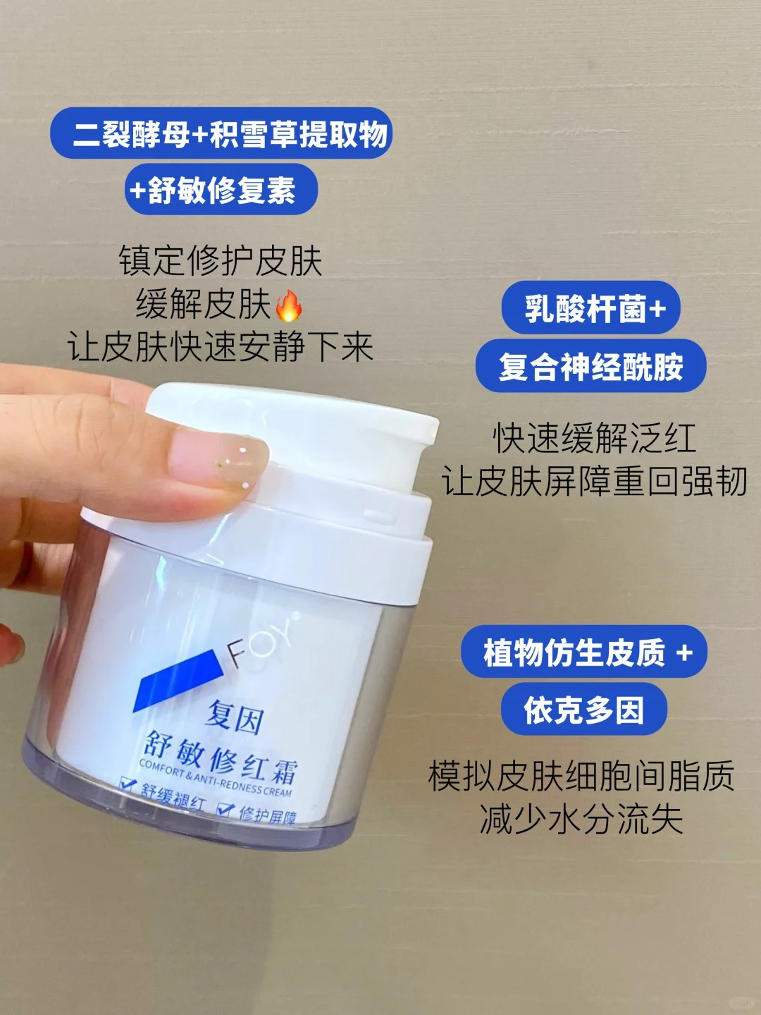 复因舒缓修红霜适合人群:换季泛红敏感、屏障受损干痒(能快速缓解皮肤红热、干痒还可以帮助维稳肌肤建立多重屏障)