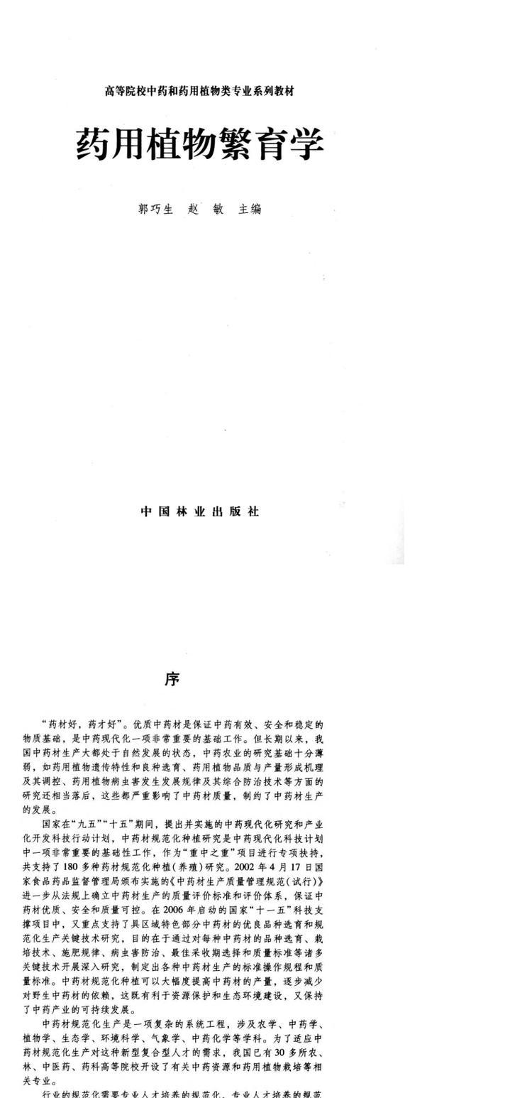药用植物繁育学 4993 高等院校中药和药用植物类专业系列教材 中国林业出版社教材