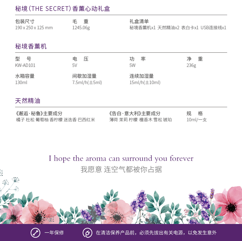 卡蛙 超声波香薰机 130ML 加湿器 KW-AD101 秘境礼盒套装(含特制精油x2)