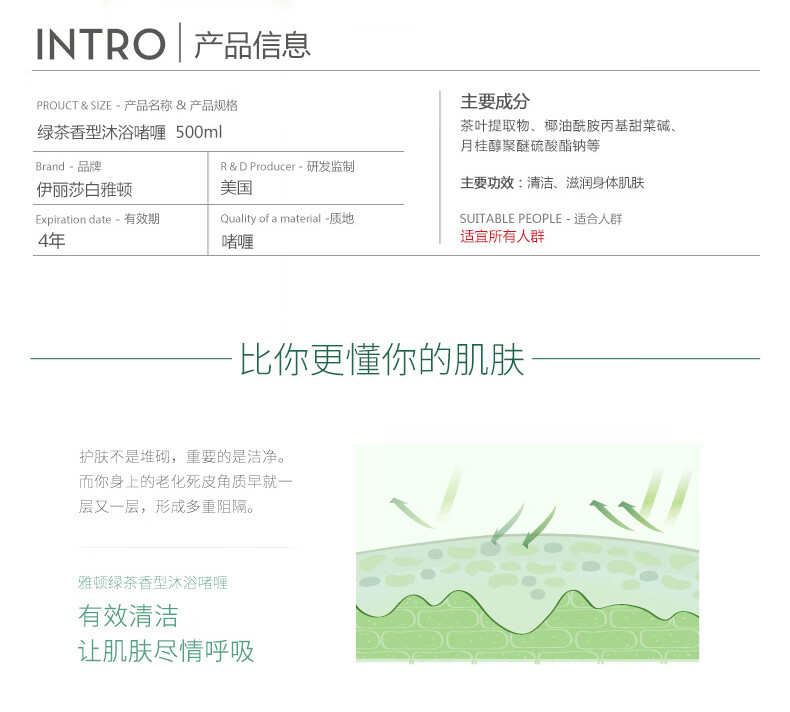 【年货价】Elizabeth Arden 伊丽莎白雅顿 绿茶沐浴露 500ml 清爽净肤