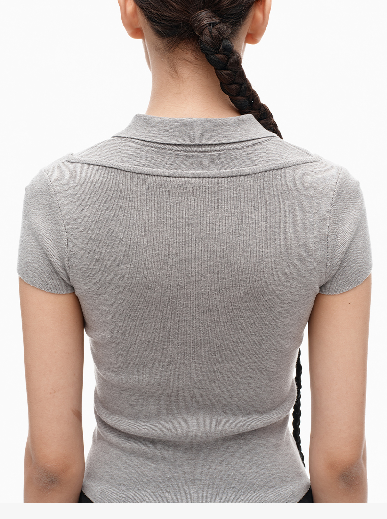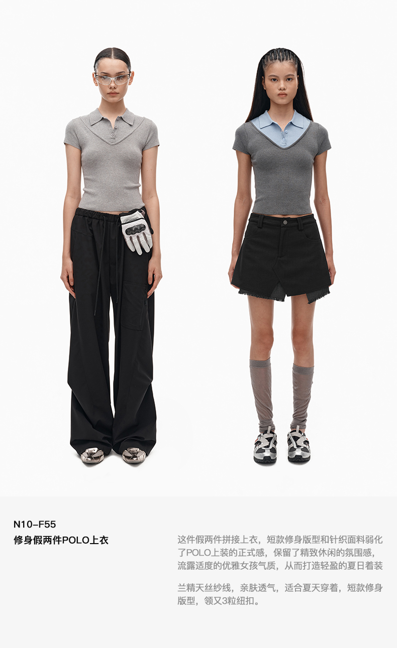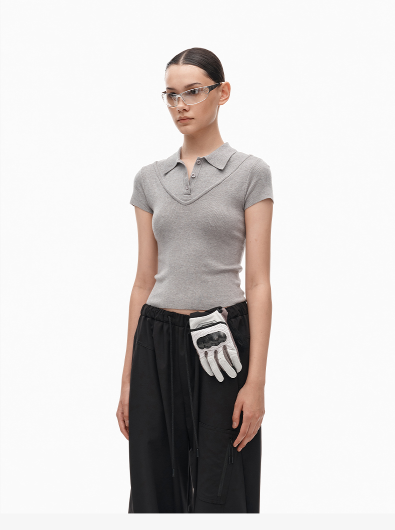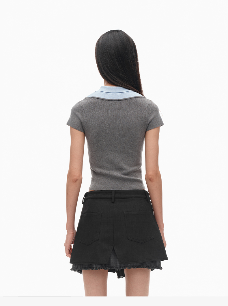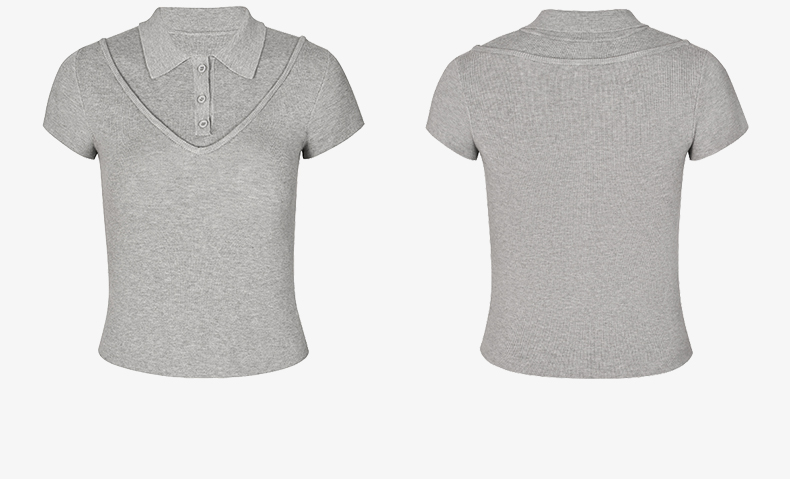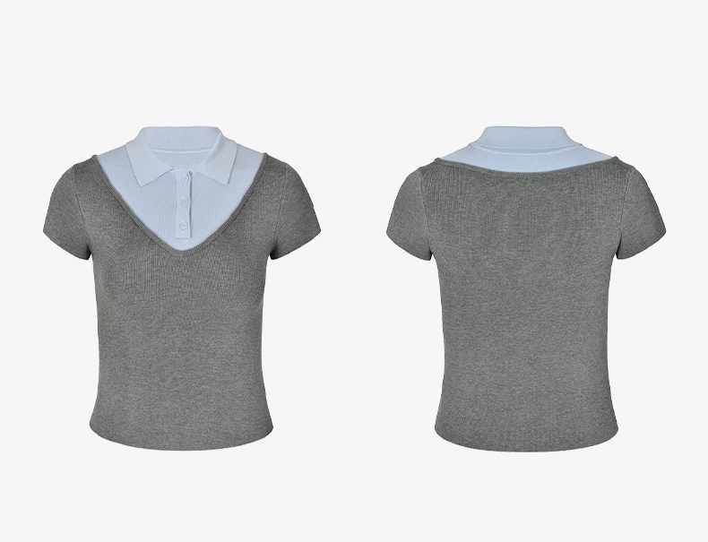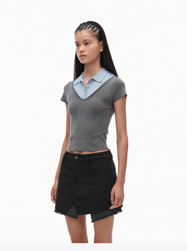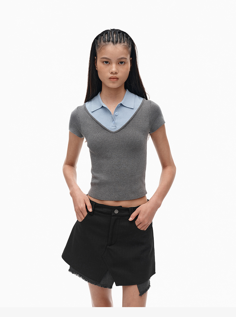 NUTH假两件polo领T恤修身显瘦针织短袖t恤女