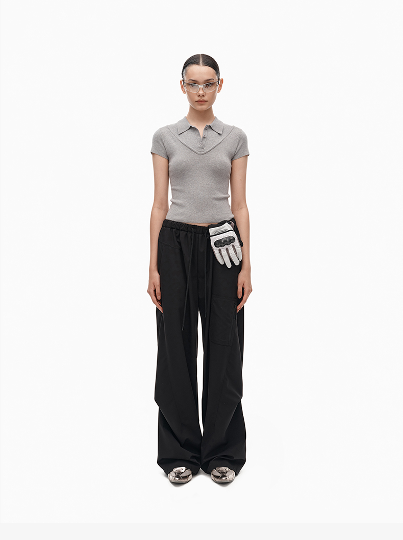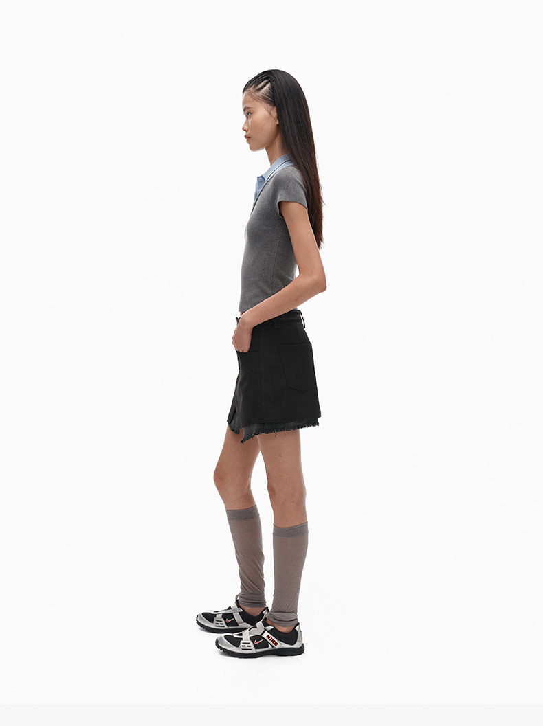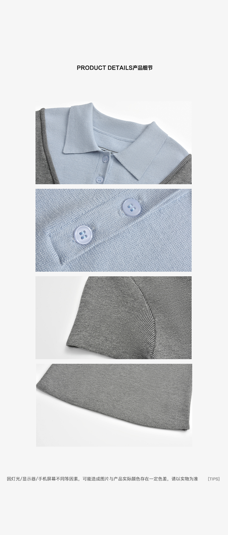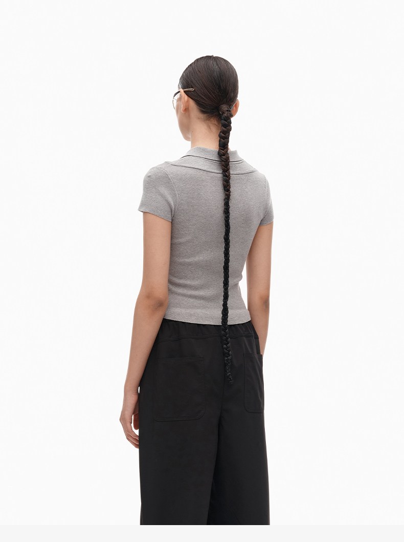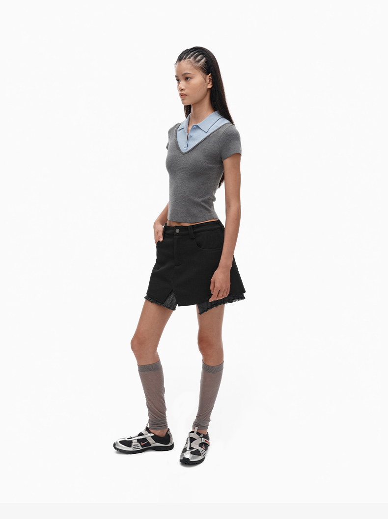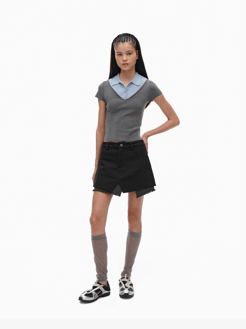 NUTH假两件polo领T恤修身显瘦针织短袖t恤女