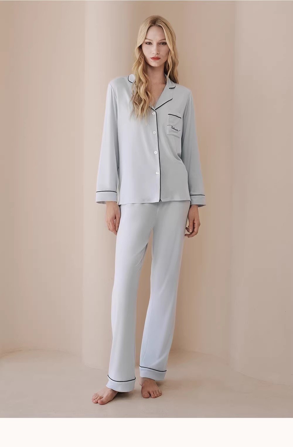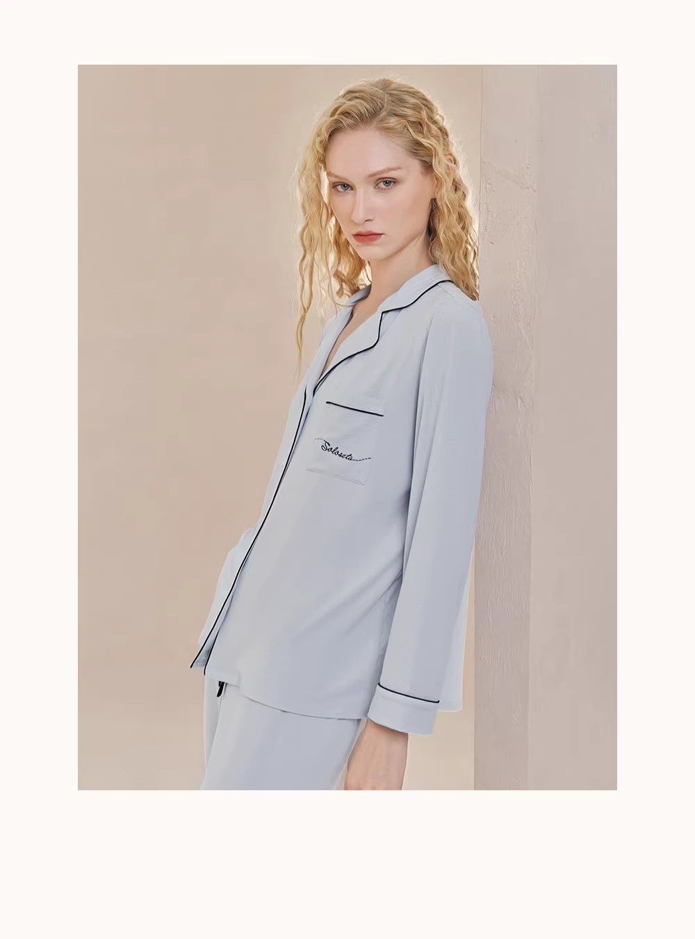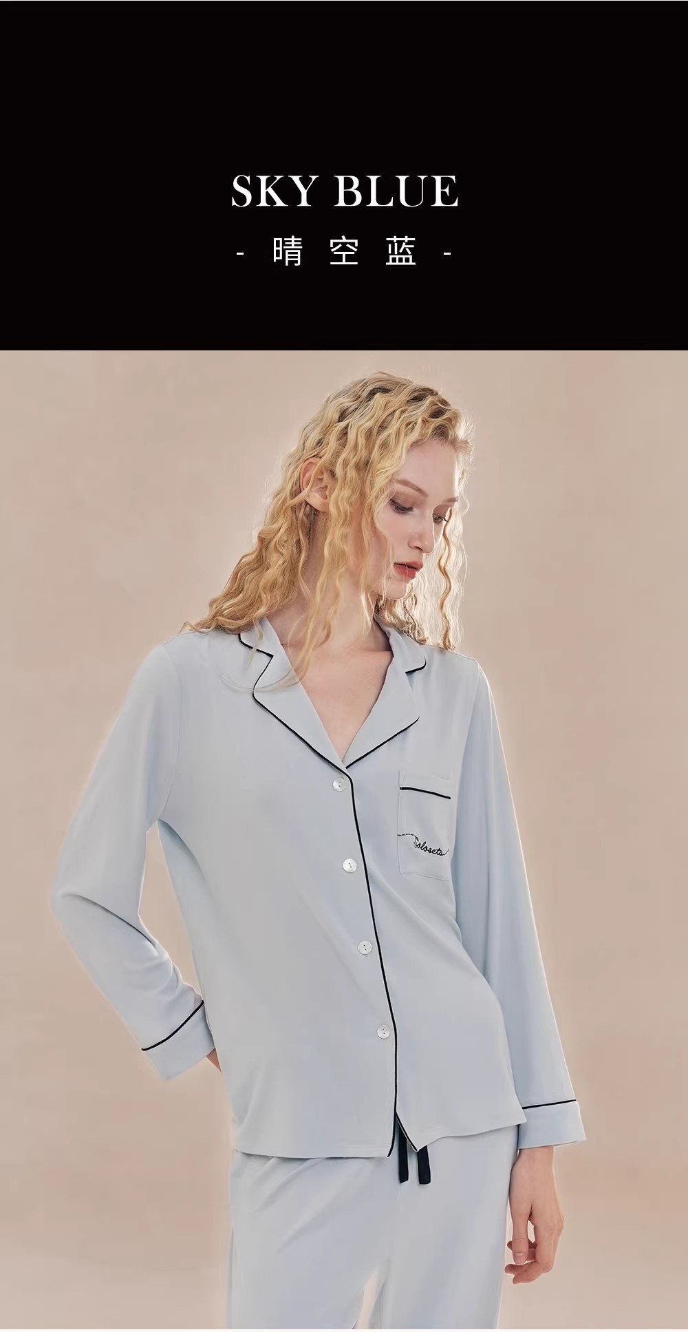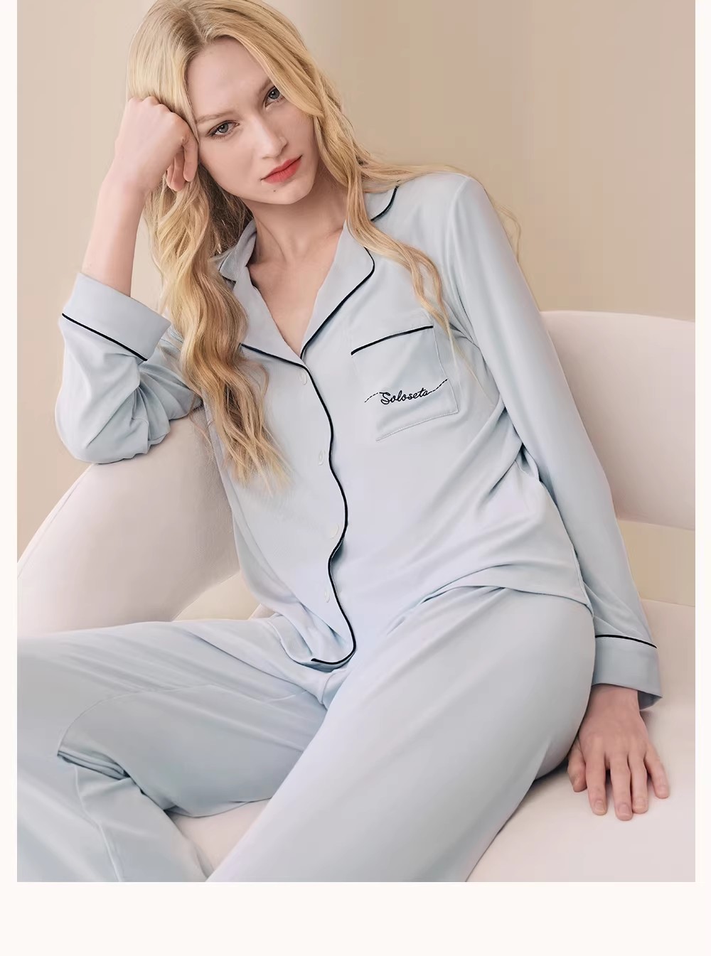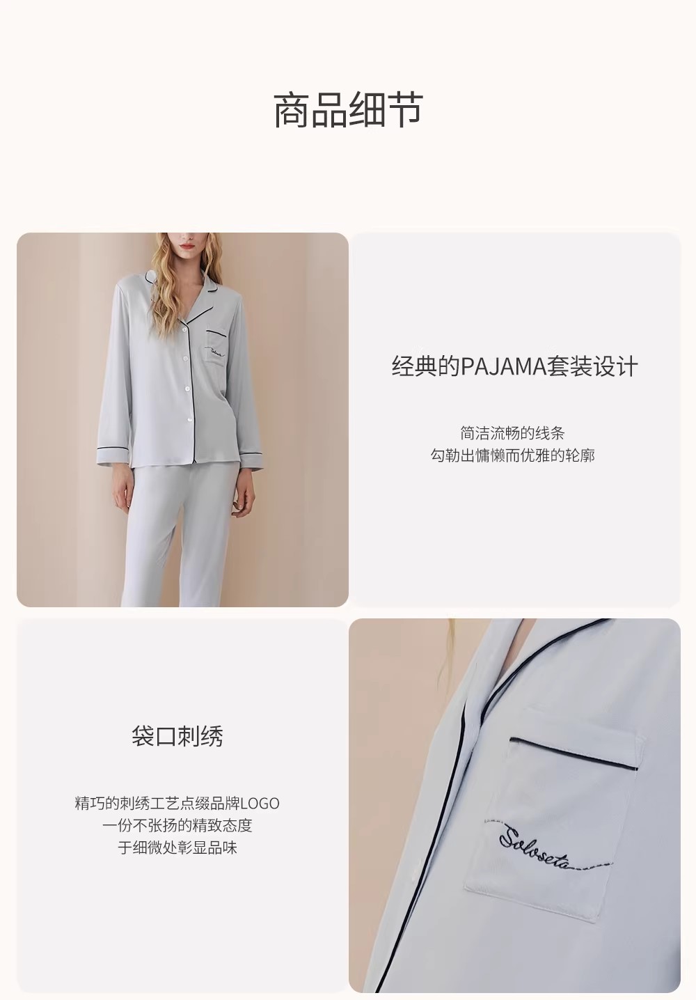 Solo seta女士长袖长裤睡衣套装莫代尔桑蚕丝刺绣2026春夏新款