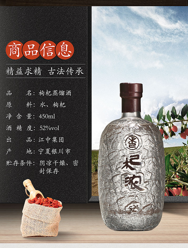 【6瓶整箱】杞浓酒52度 杞香型枸杞酒蒸馏白酒450ml/瓶*6瓶