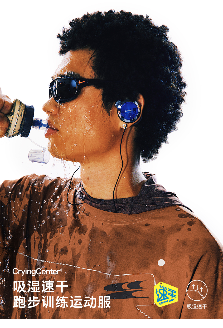 CryingCenter撞色线条吸湿速干马拉松跑步训练运动服长袖男女同款