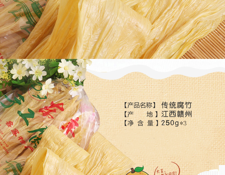 江西特产开手工腐竹豆筋农家干货阳埠腐竹赣南特产250g*3包装