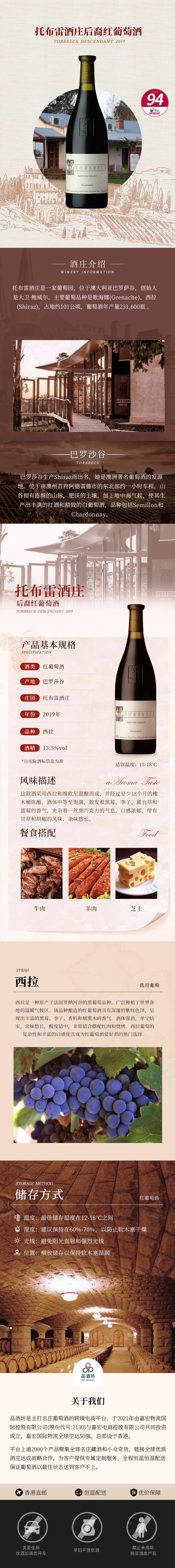 2019 Torbreck Descendant 托布雷酒庄后裔红葡萄酒