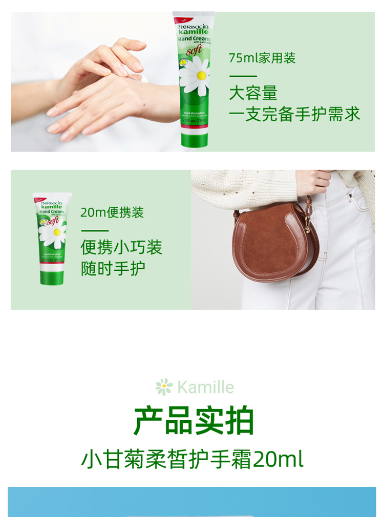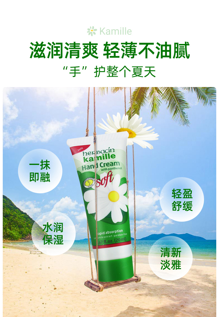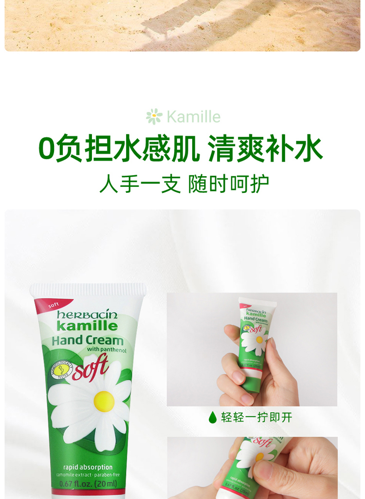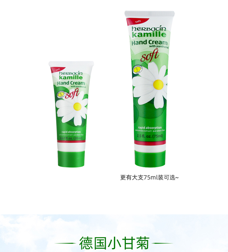 【3支装】HERBACIN好本清 德国小甘菊清爽护手霜 嫩滑补水便携装送礼伴手礼 20ml/支