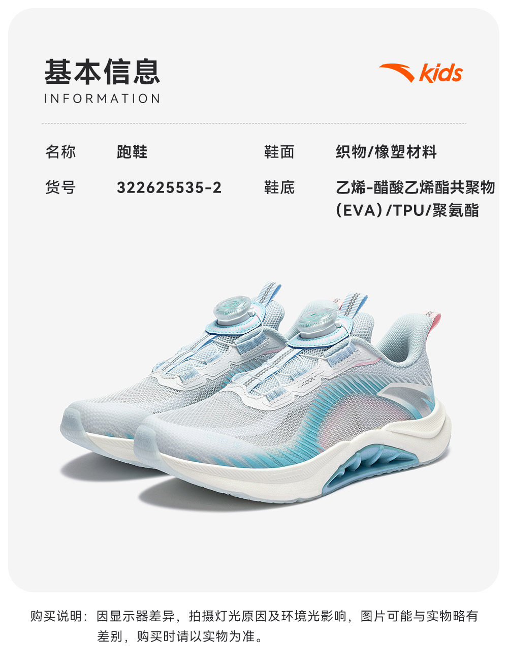 安踏儿童足弓PRO女童跑鞋2026春夏新款跑步鞋运动鞋校园大童童鞋322625535