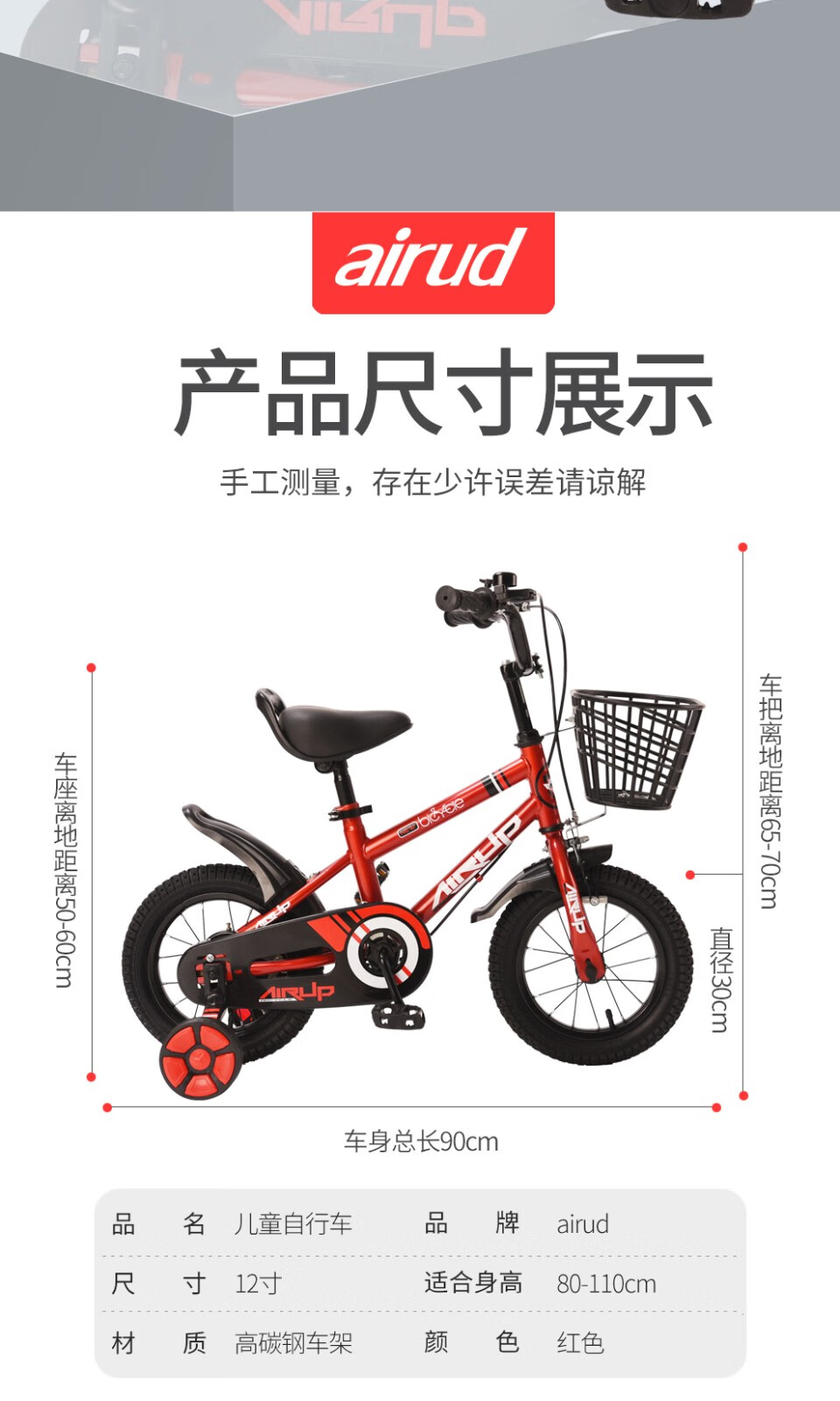 AIrud(艾瑞迪)儿童12寸自行车红色/天蓝色
