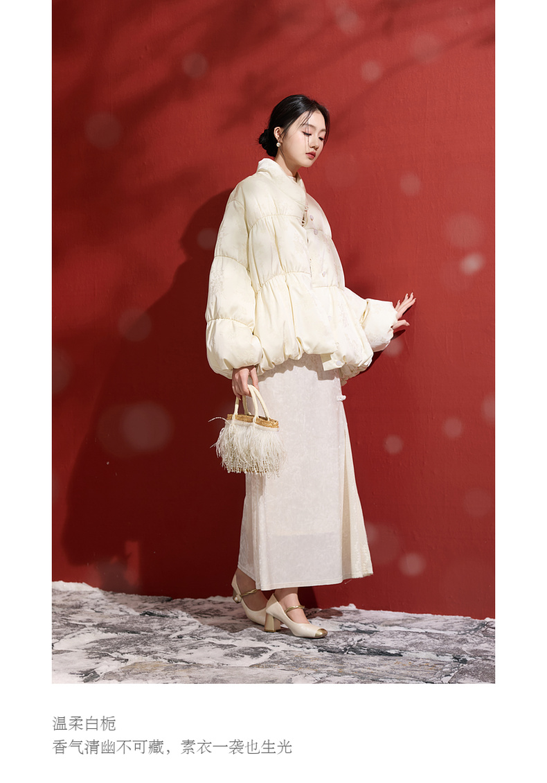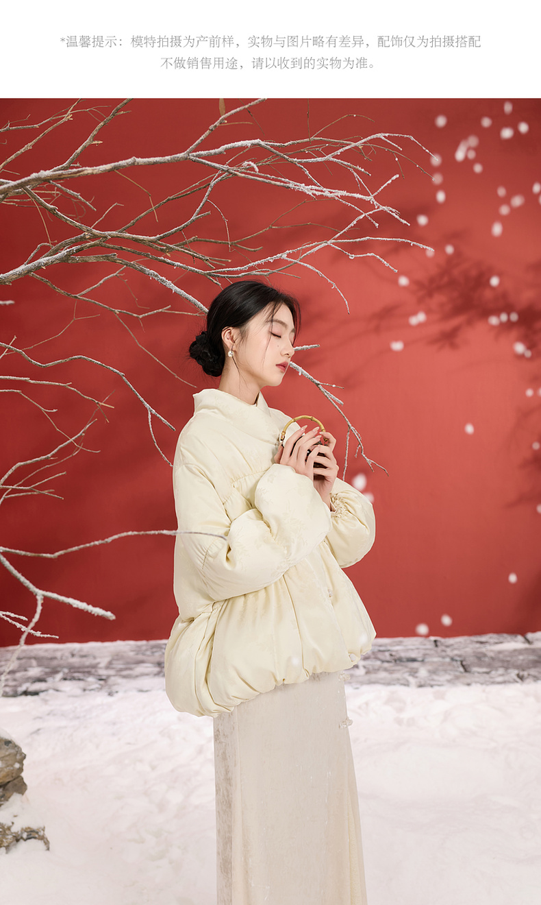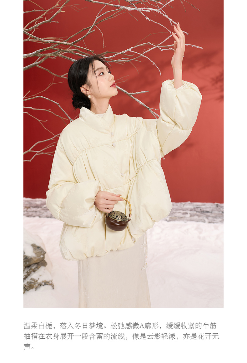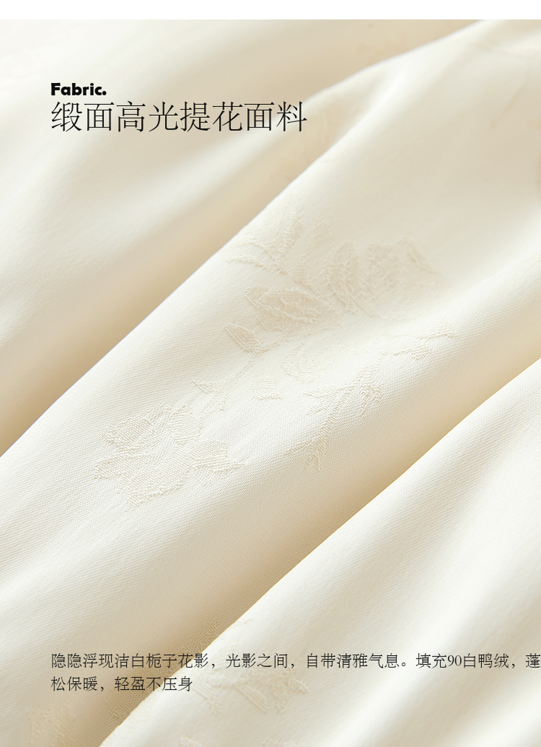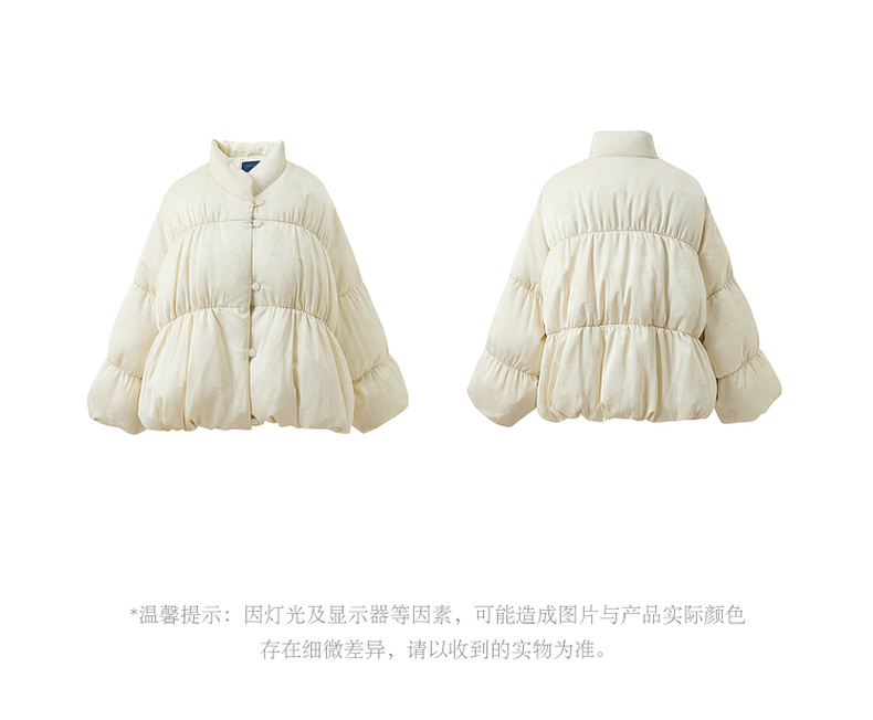 三彩【温柔白栀】2025冬季新款90白鸭绒羽绒服宽松短款面包服C