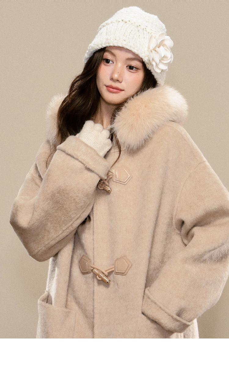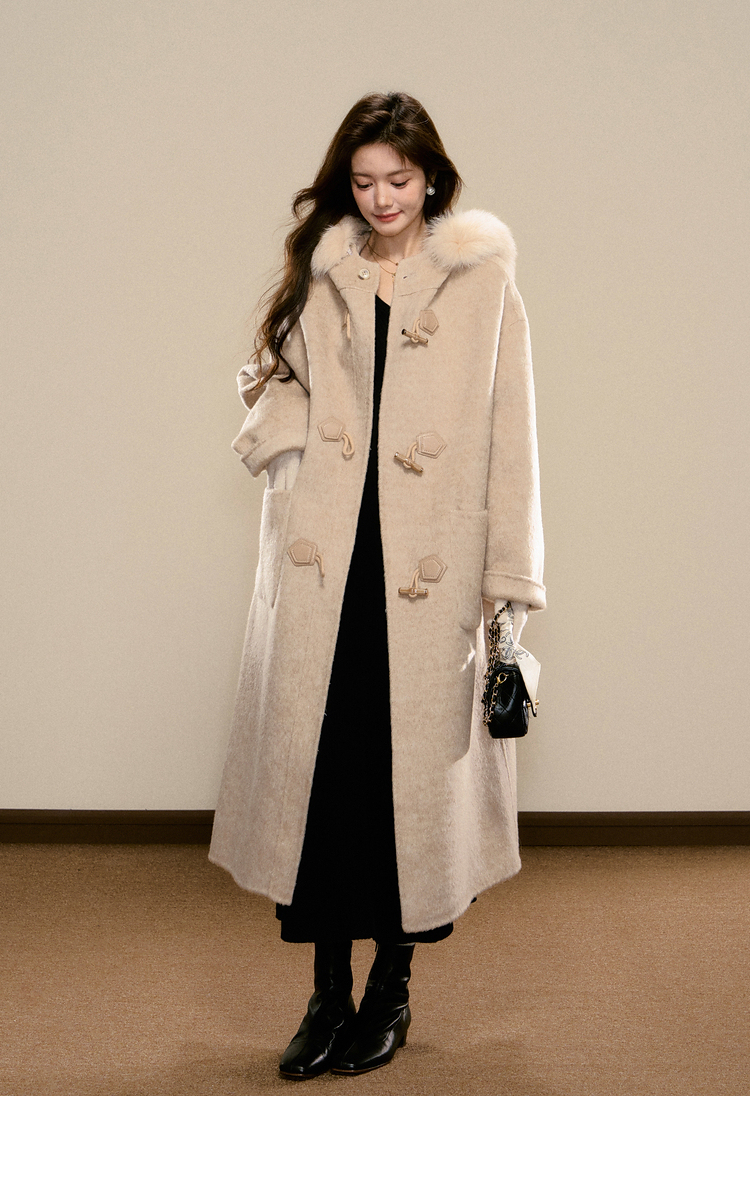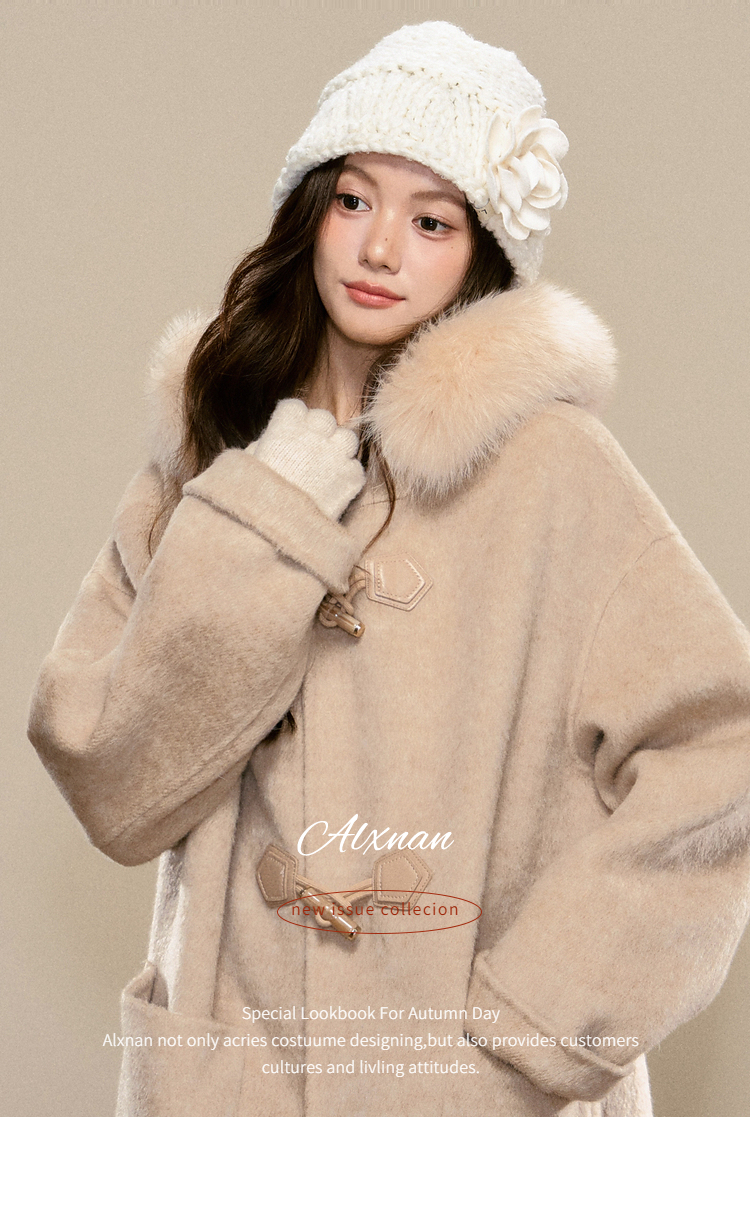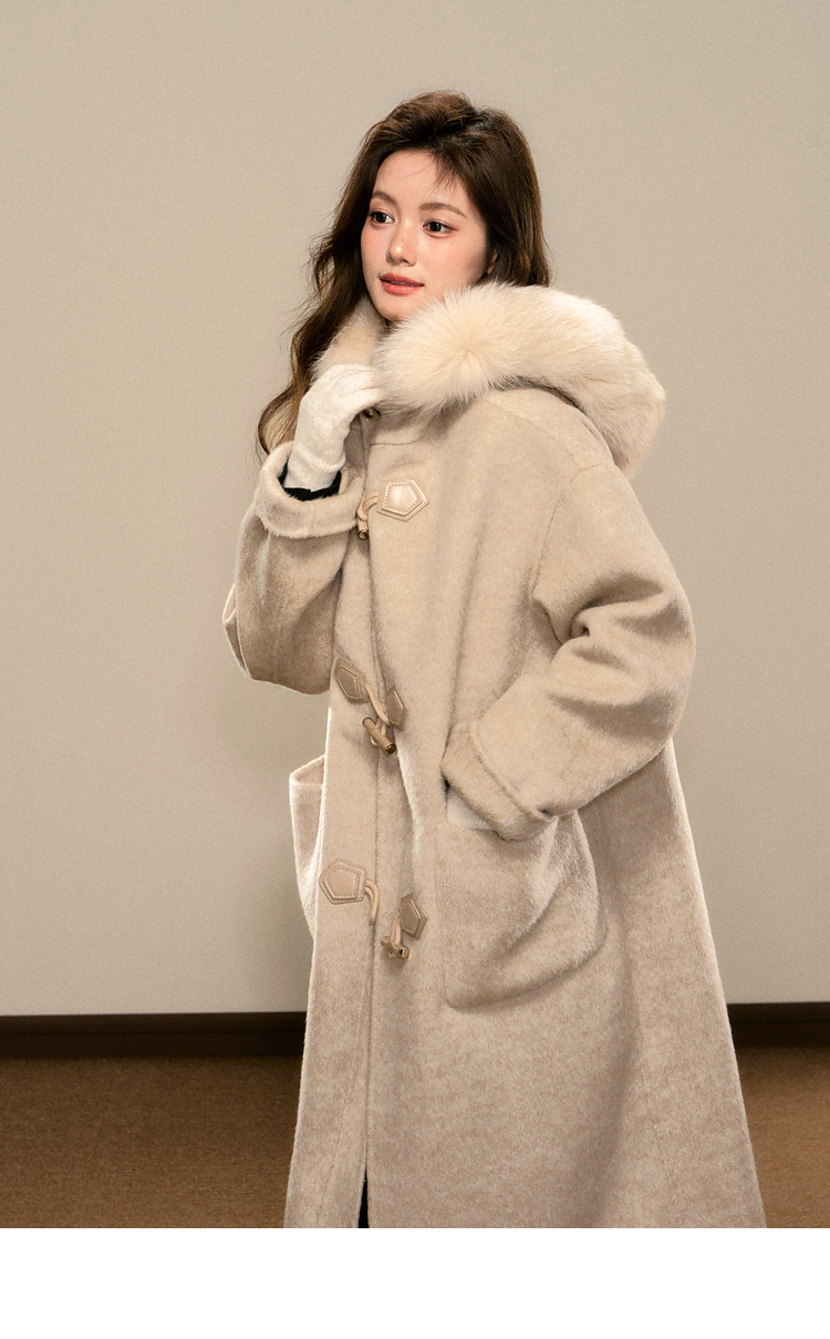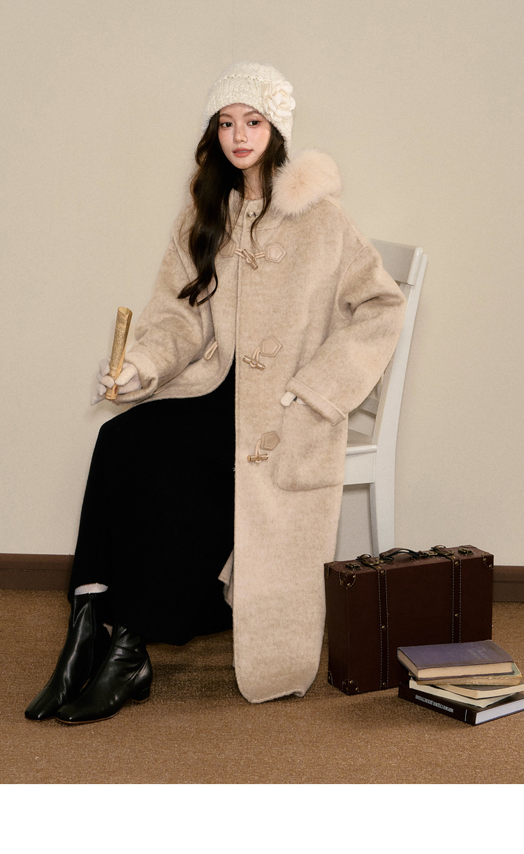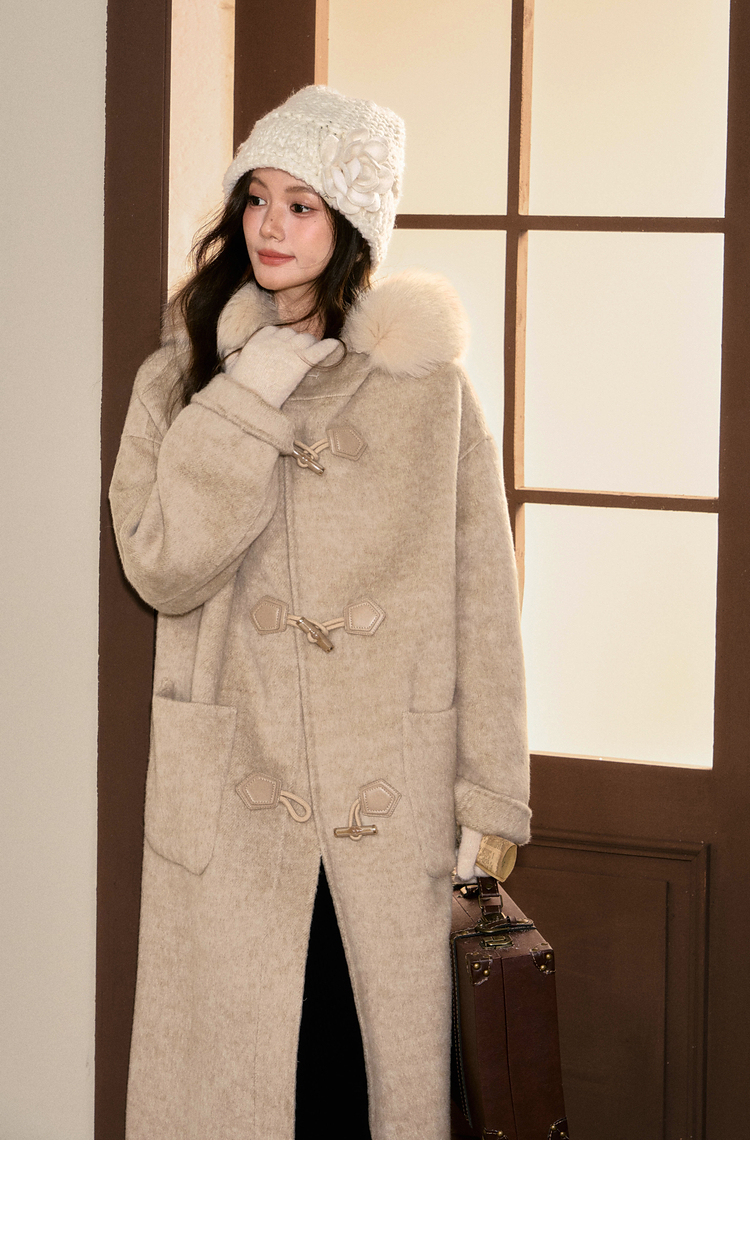 鹿向南「雪梅沁香」燕麦色长款毛呢外套冬季新款保暖高级感大衣女