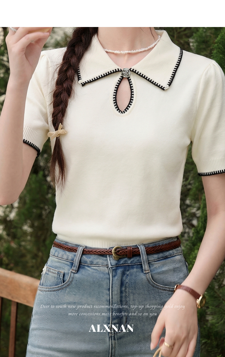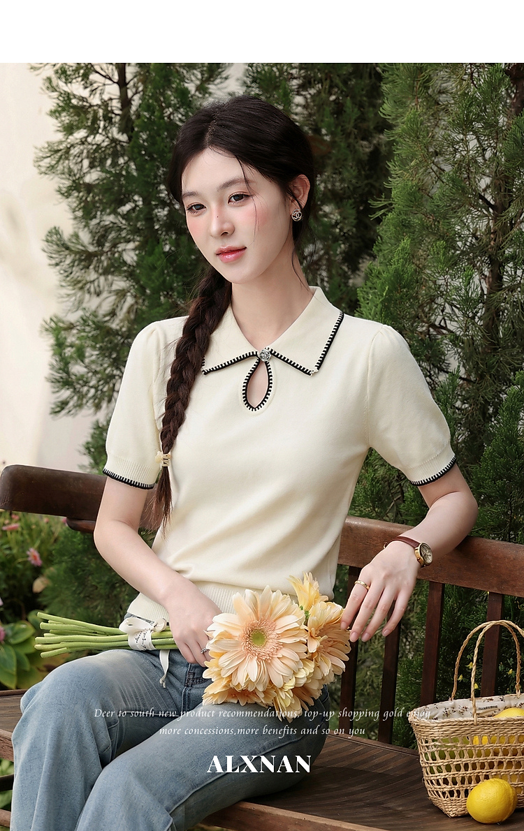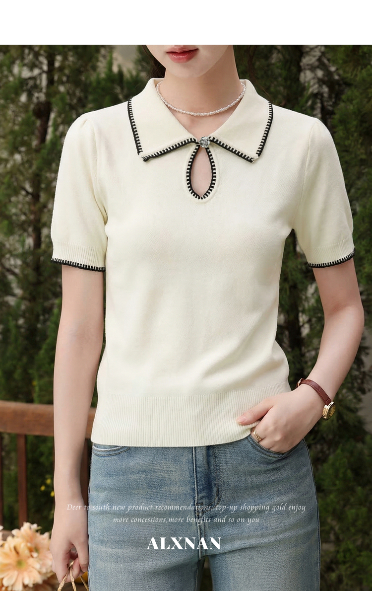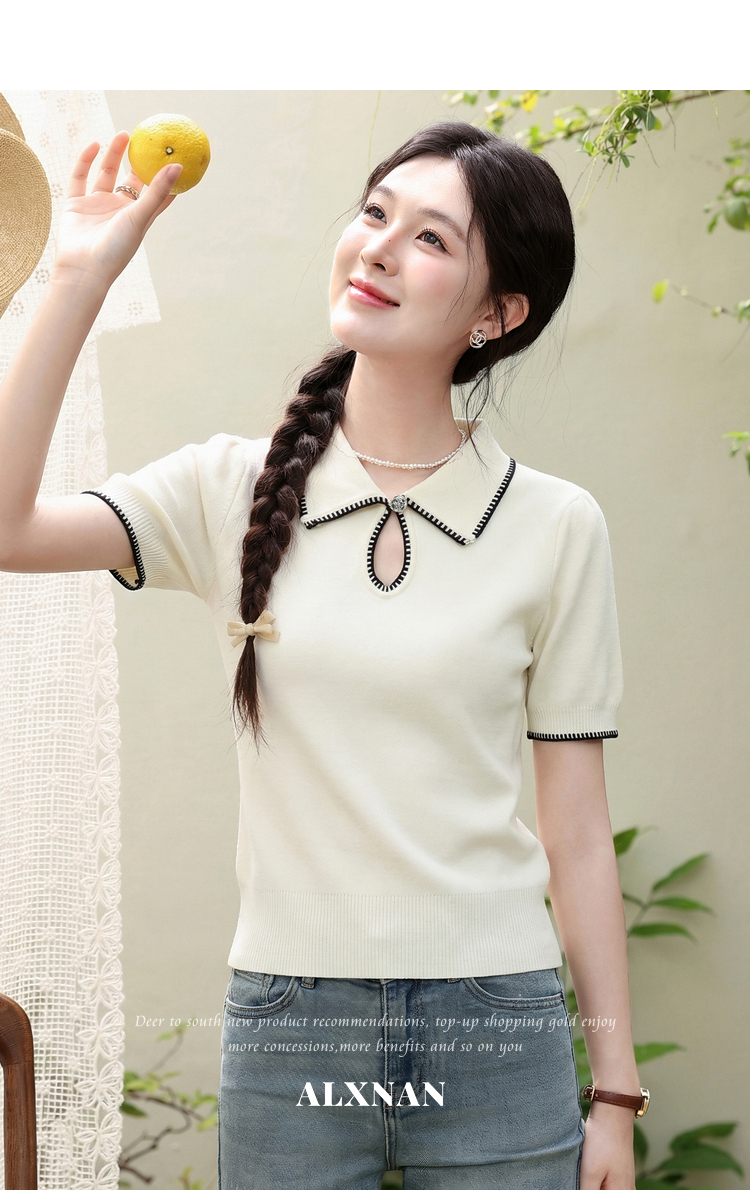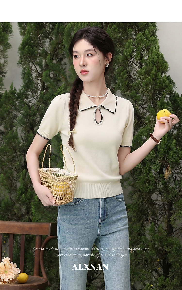 鹿向南「星环风吟」翻领针织短袖女2026夏新款修身百搭小心机上衣