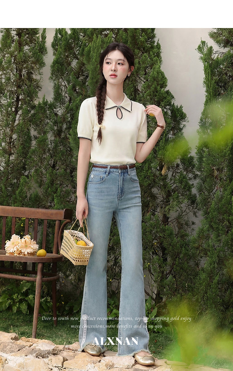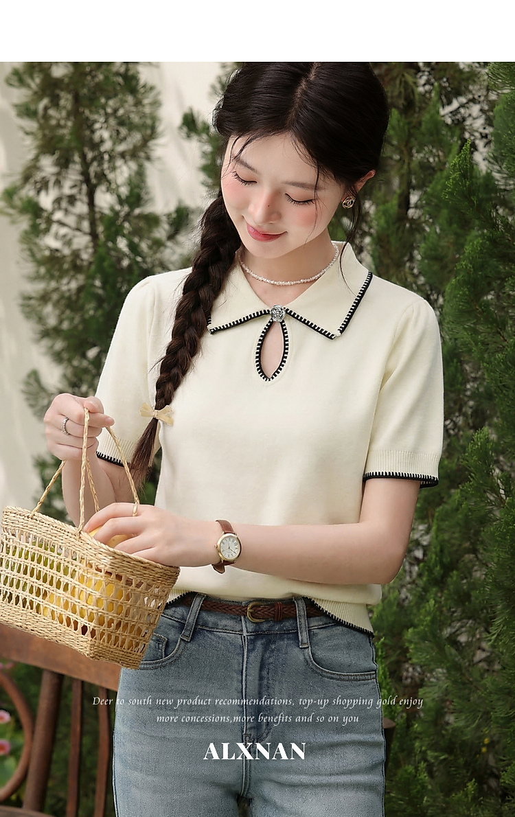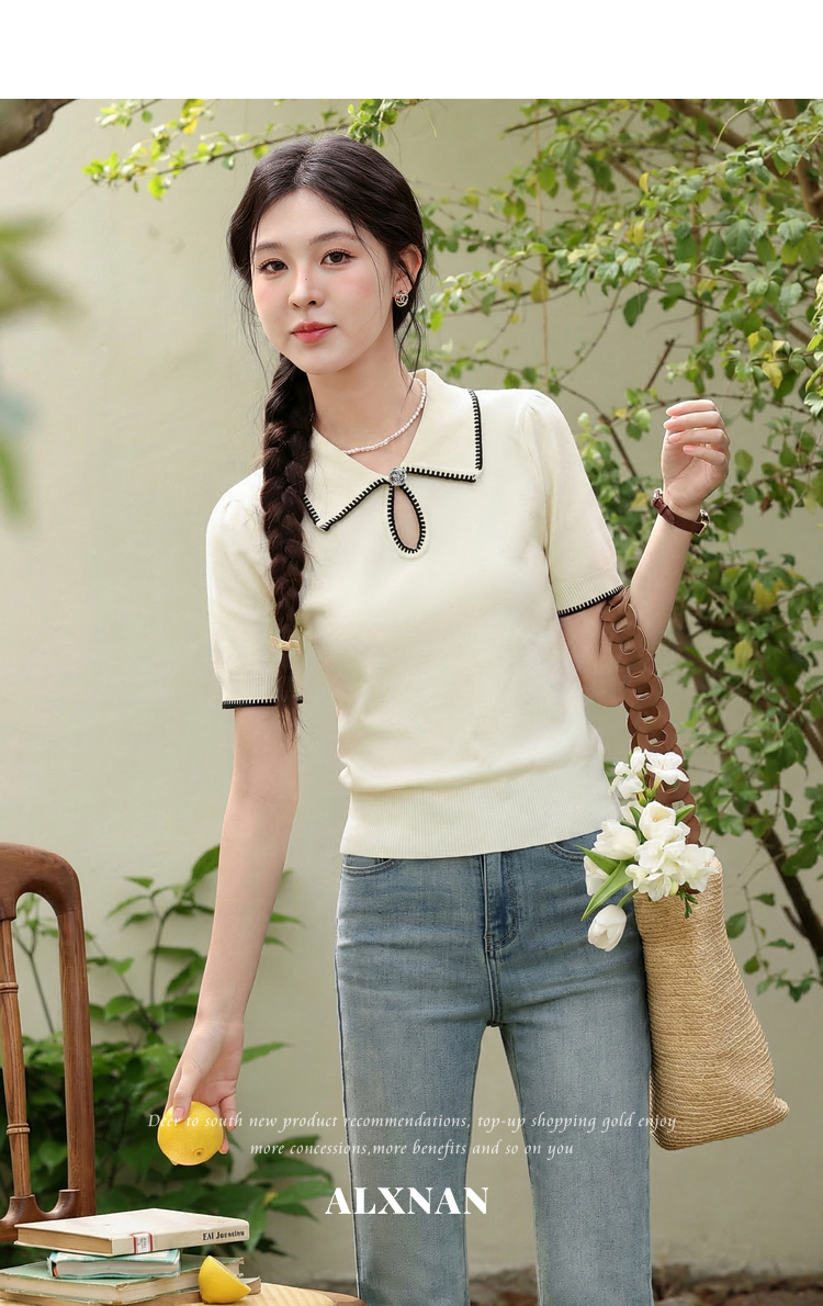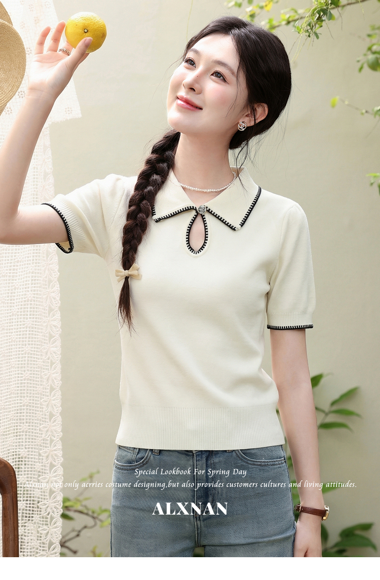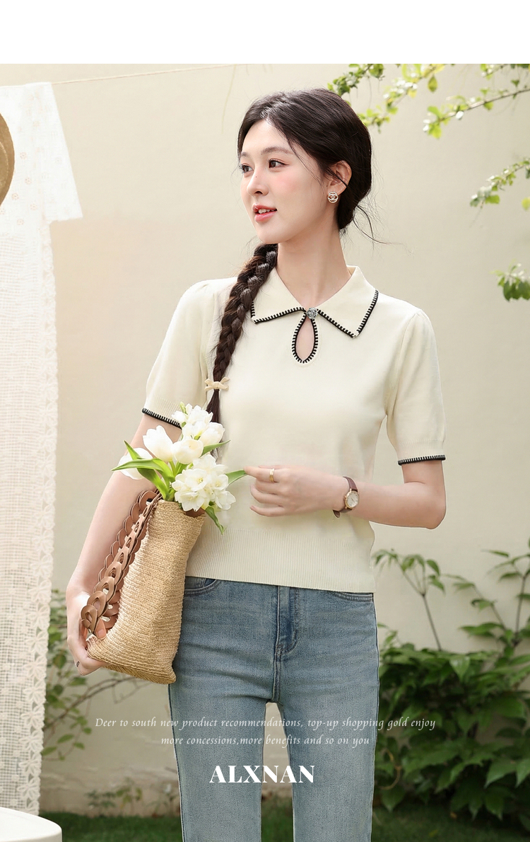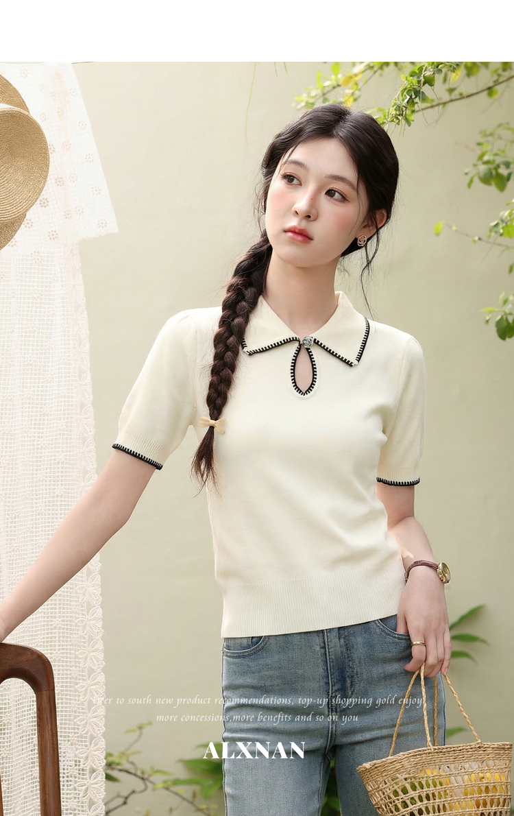 鹿向南「星环风吟」翻领针织短袖女2026夏新款修身百搭小心机上衣