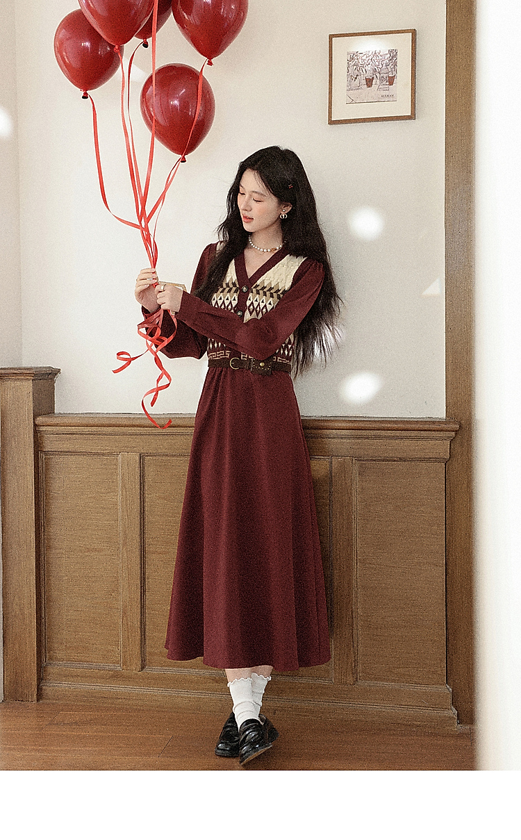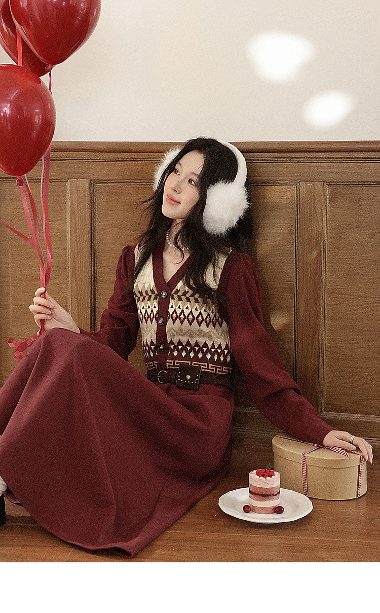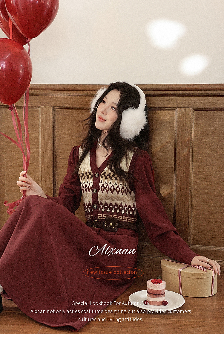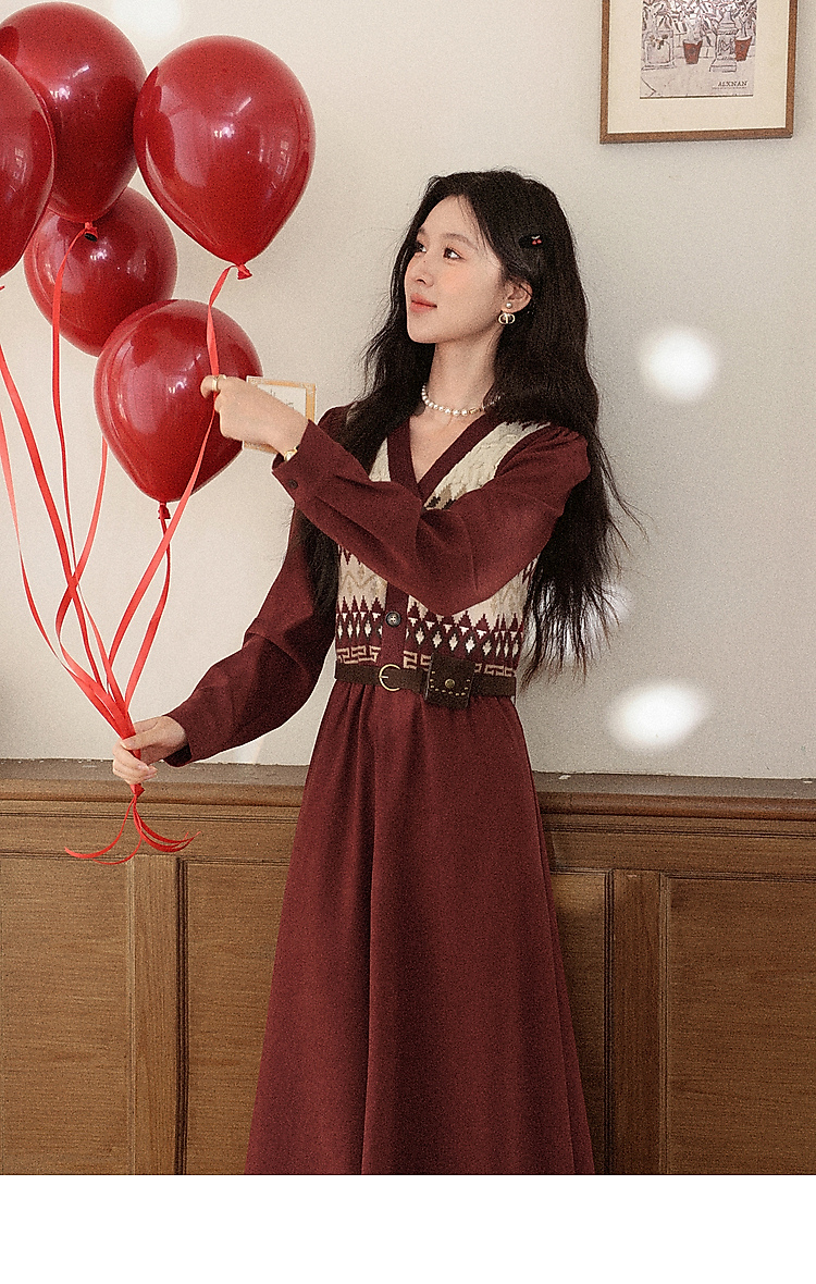 鹿向南【1220/20:00新品前1小时7折限量100件】红色连衣裙