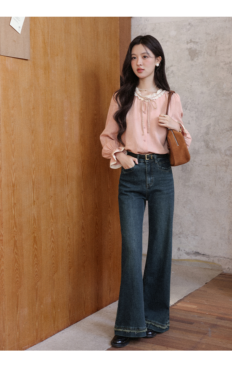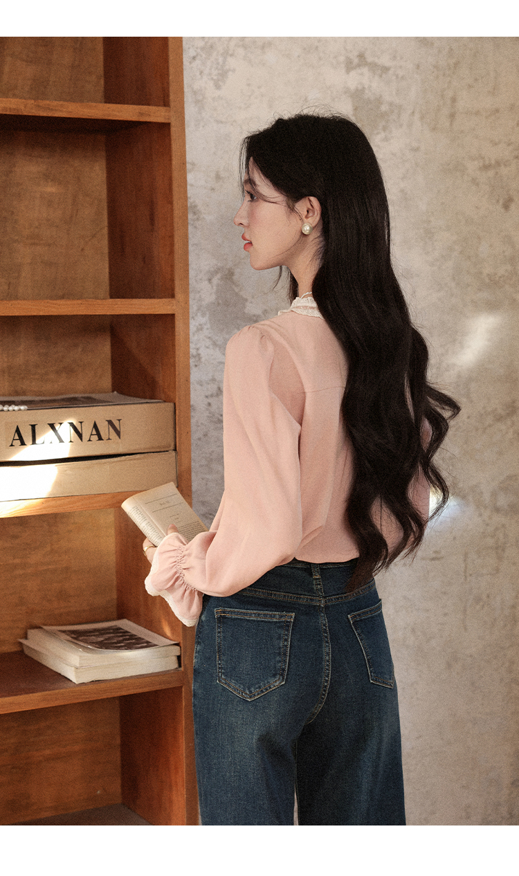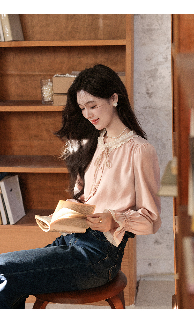 【6折秒杀】鹿向南「樱花糖霜」木耳边粉色内搭衬衫秋季新款长袖法式开衫女士