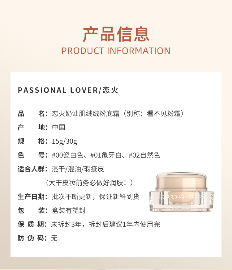【看不见粉霜】Passional Lover/恋火 奶油肌绒绒粉底霜