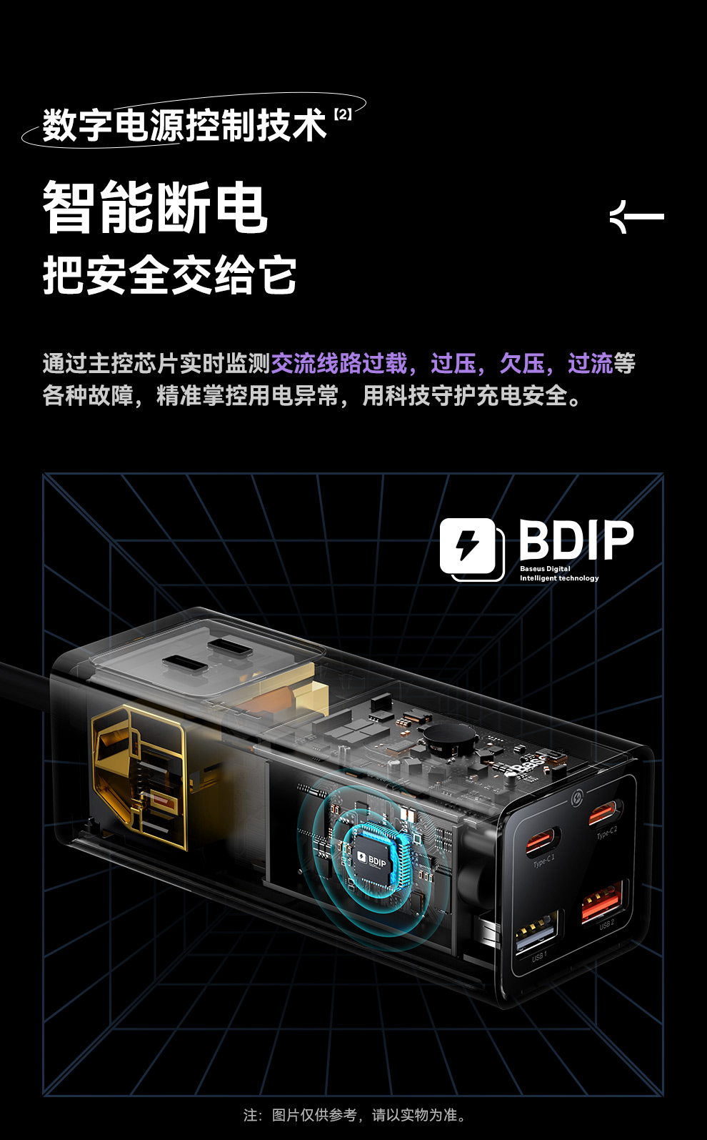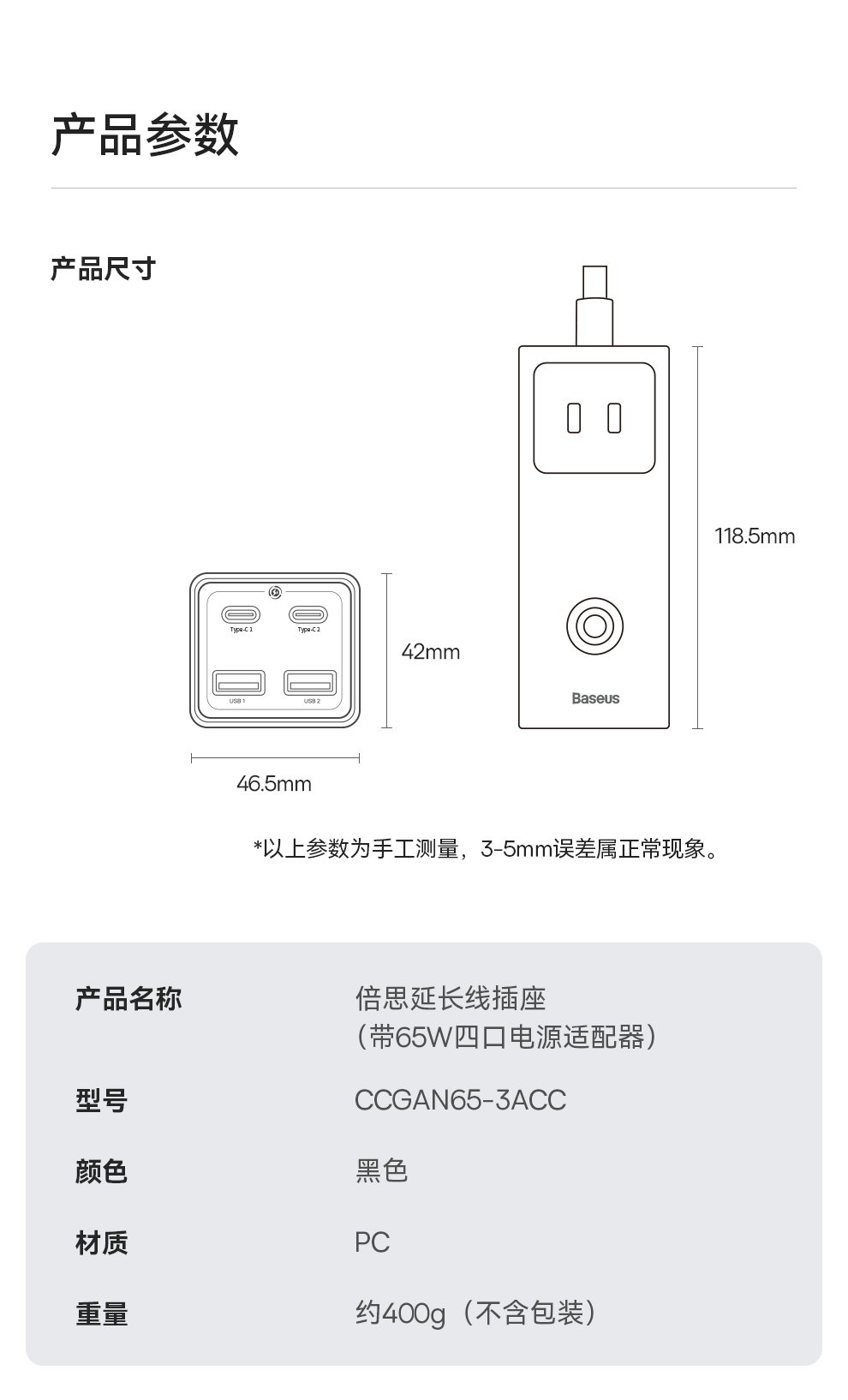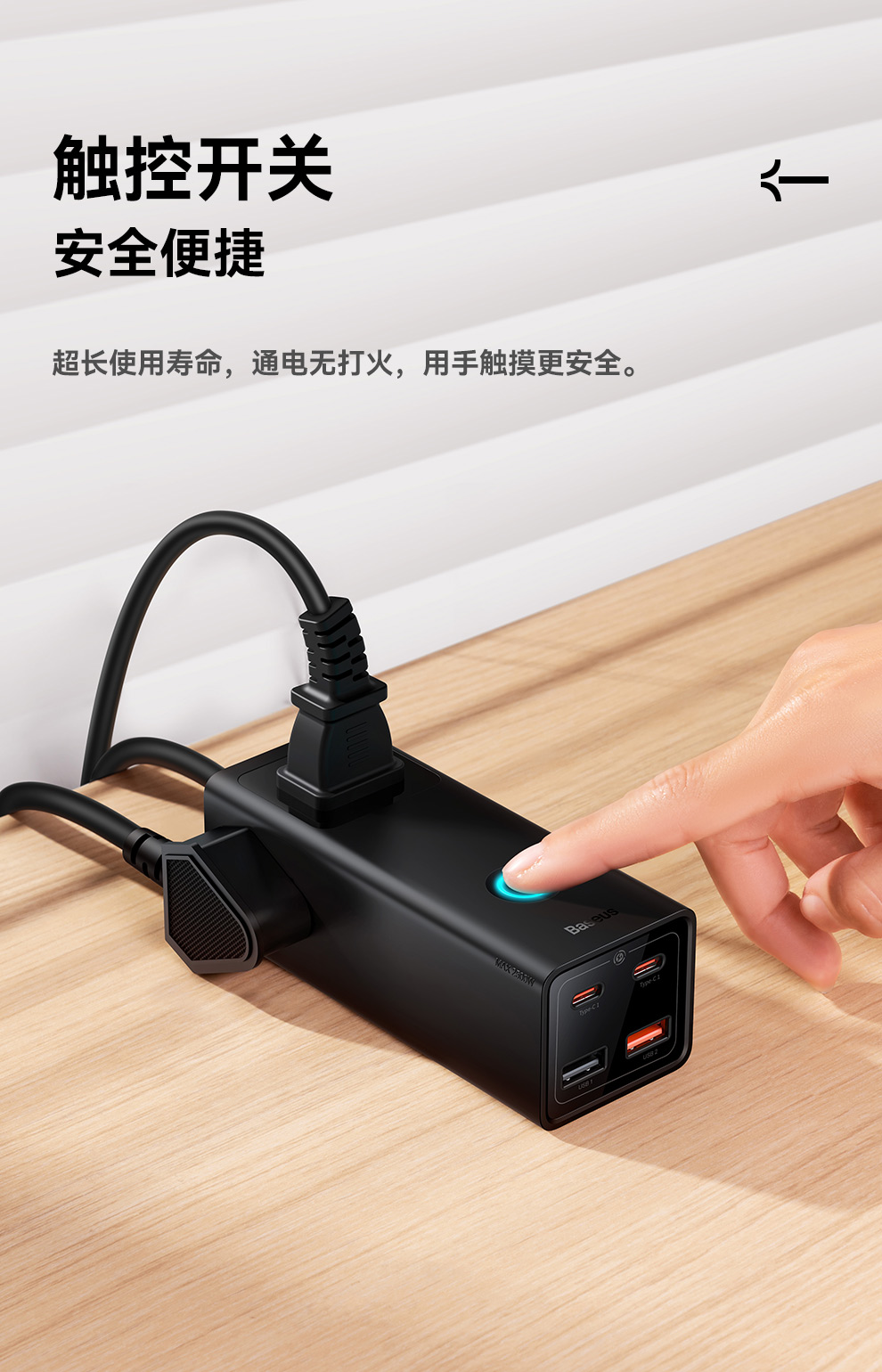 倍思 灵傲系列 数字式插线板 3AC+2U+2C 65W 1.5m电源线