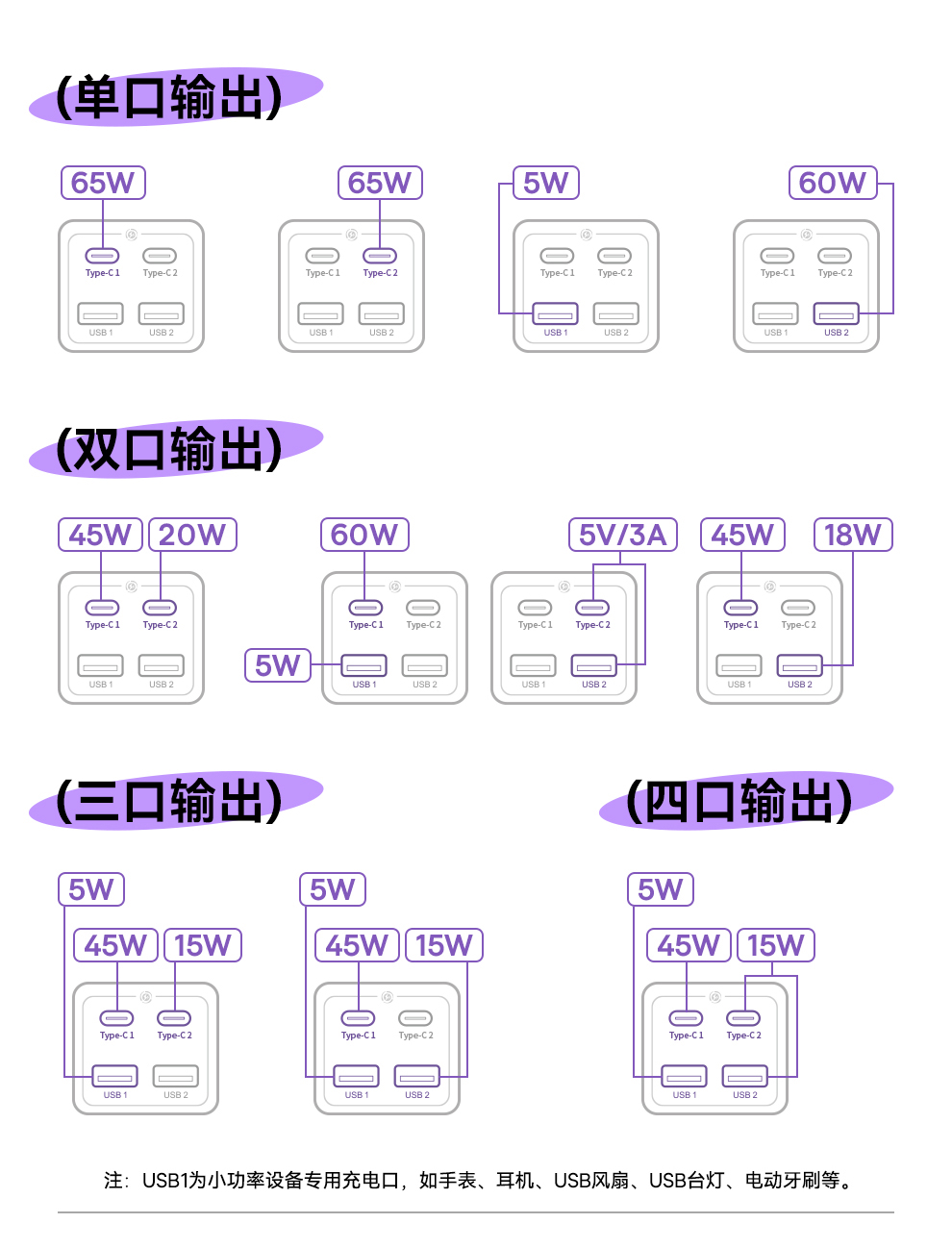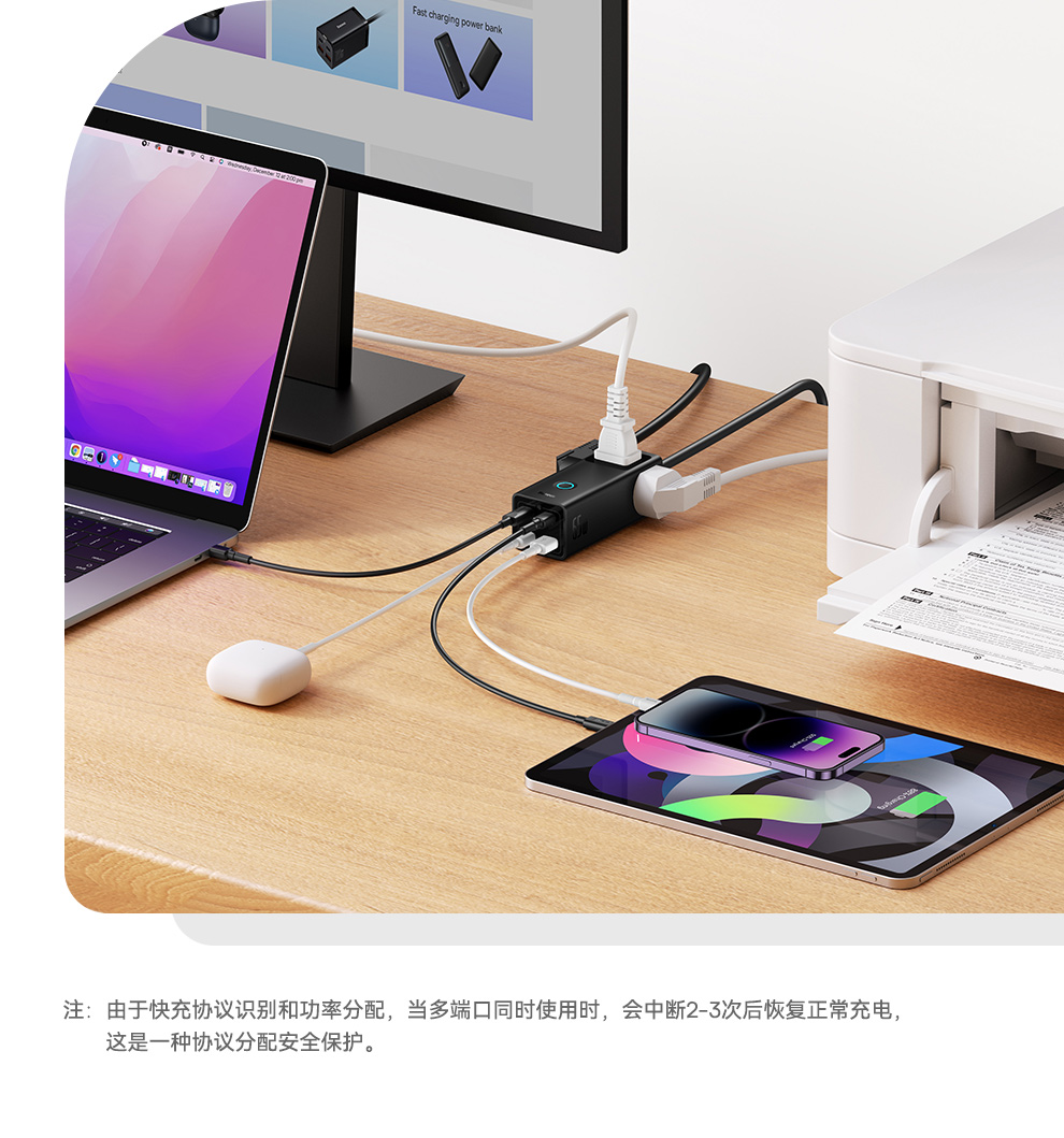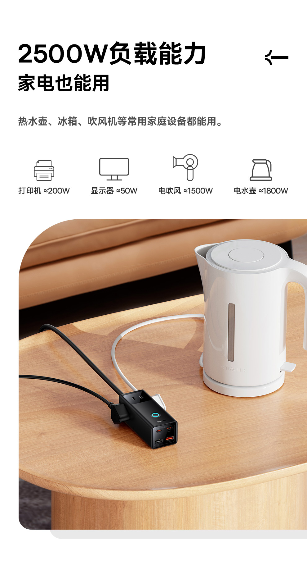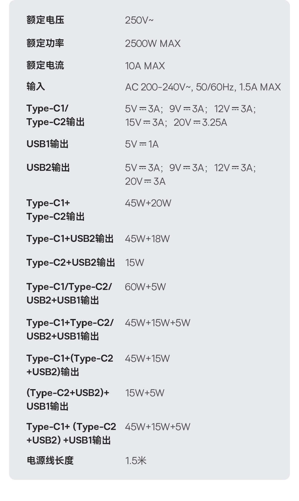 倍思 灵傲系列 数字式插线板 3AC+2U+2C 65W 1.5m电源线