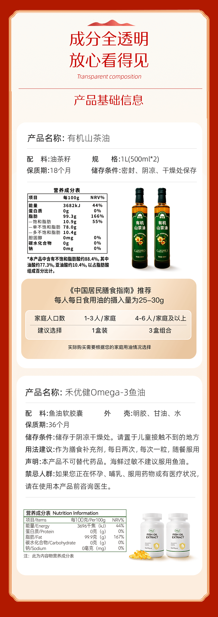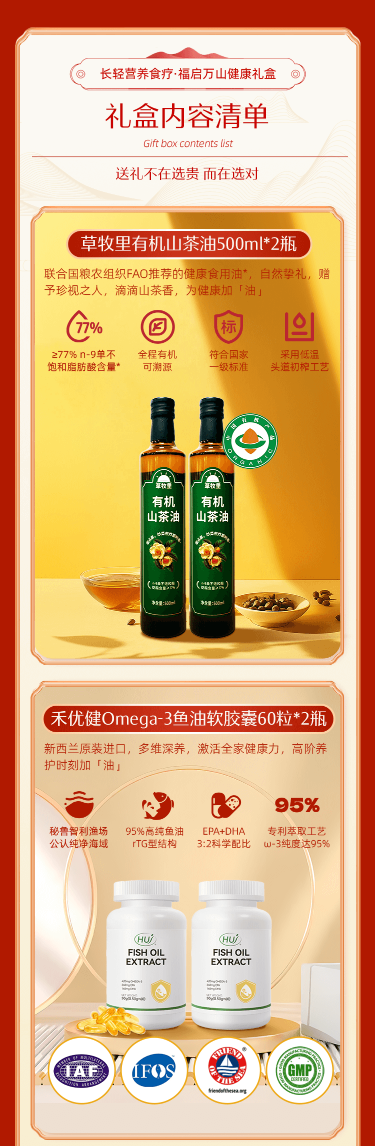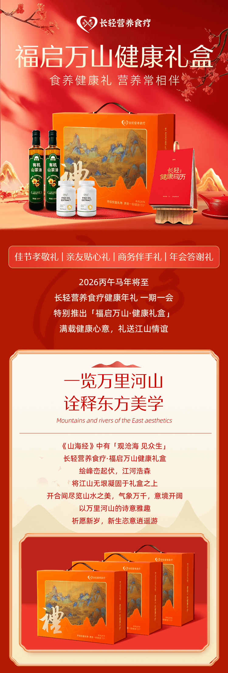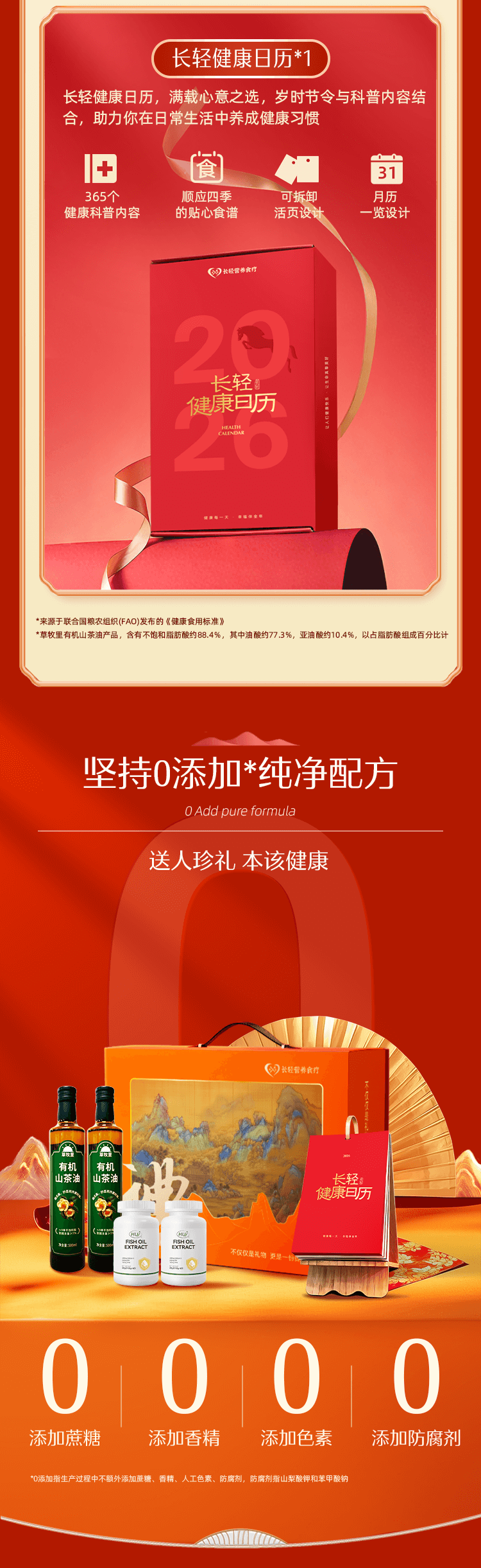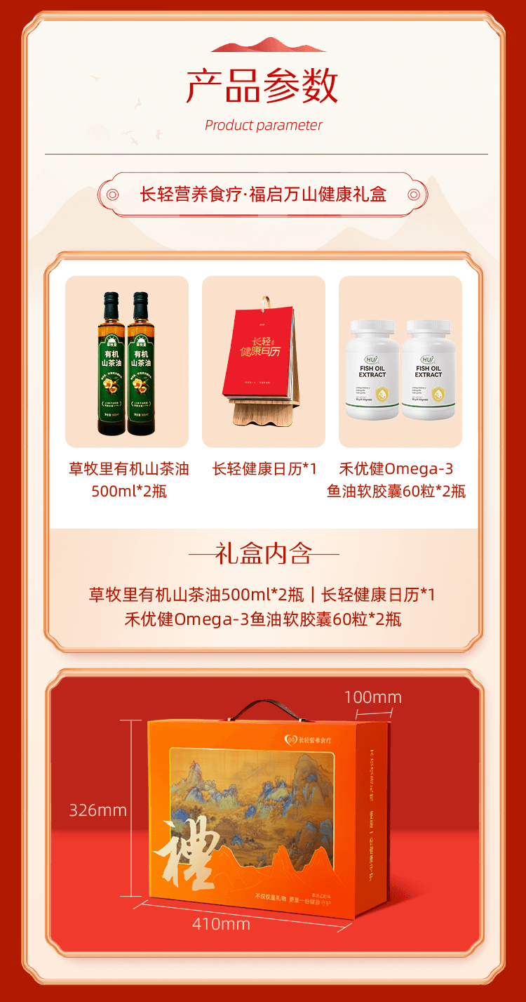 预售12月31日发货【2000积分+479元】长轻 福启万山新春健康礼盒 (山茶油500ml*2瓶+2026日历*1+鱼油60粒*2瓶)