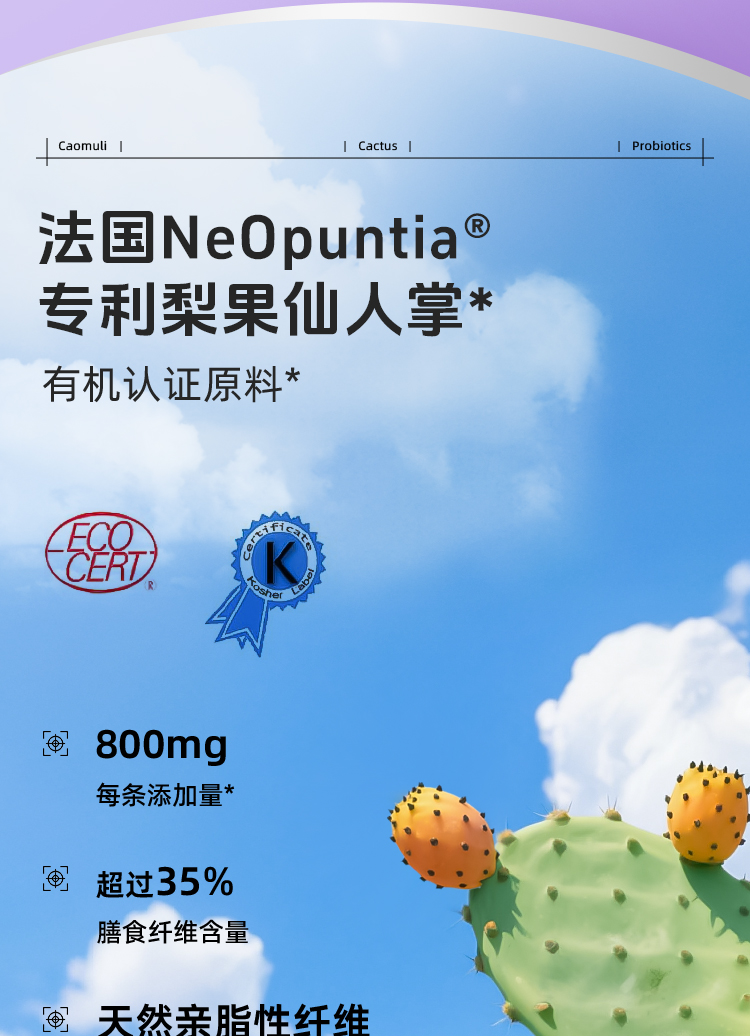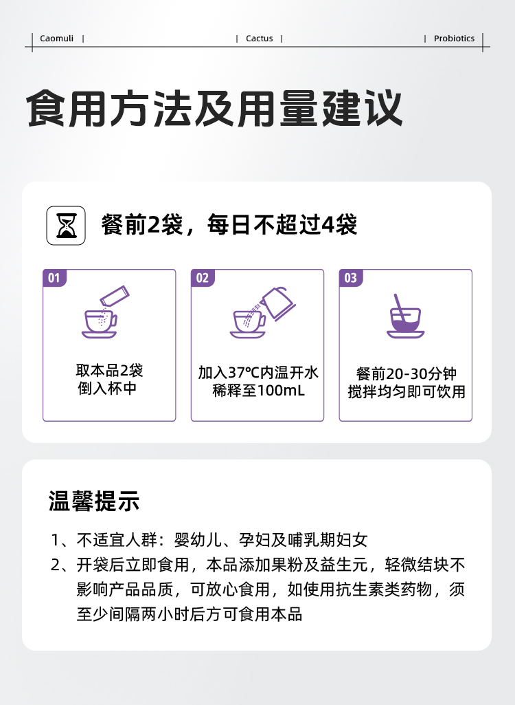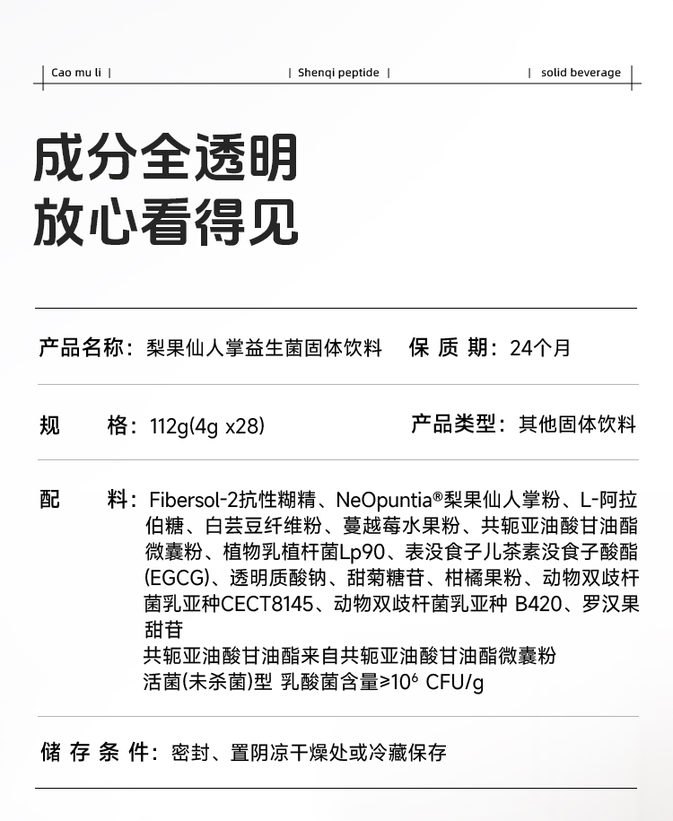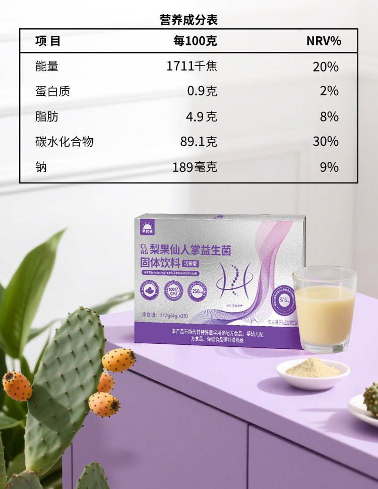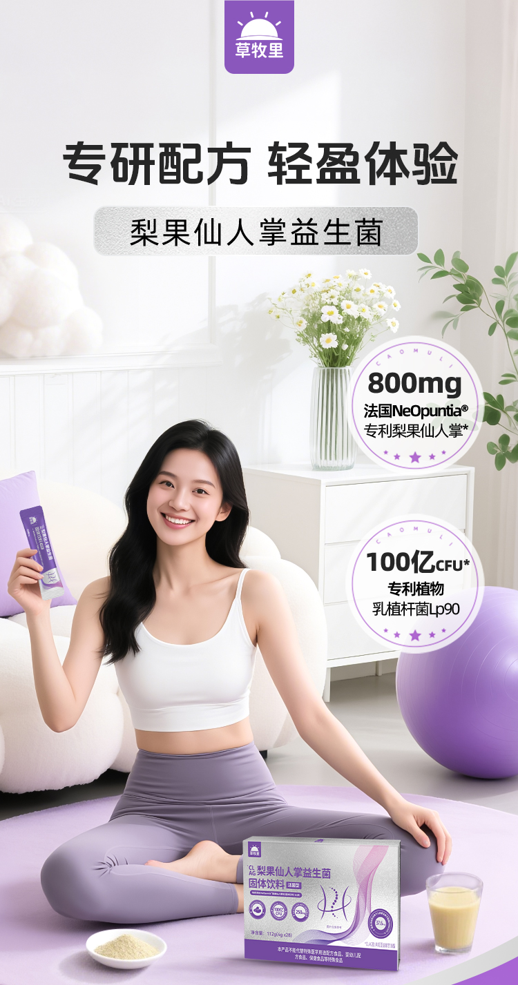 【科学成分配比】草牧里 梨果仙人掌益生菌固体饮料 4g*28袋/盒 双重植萃成分三重益生菌助力