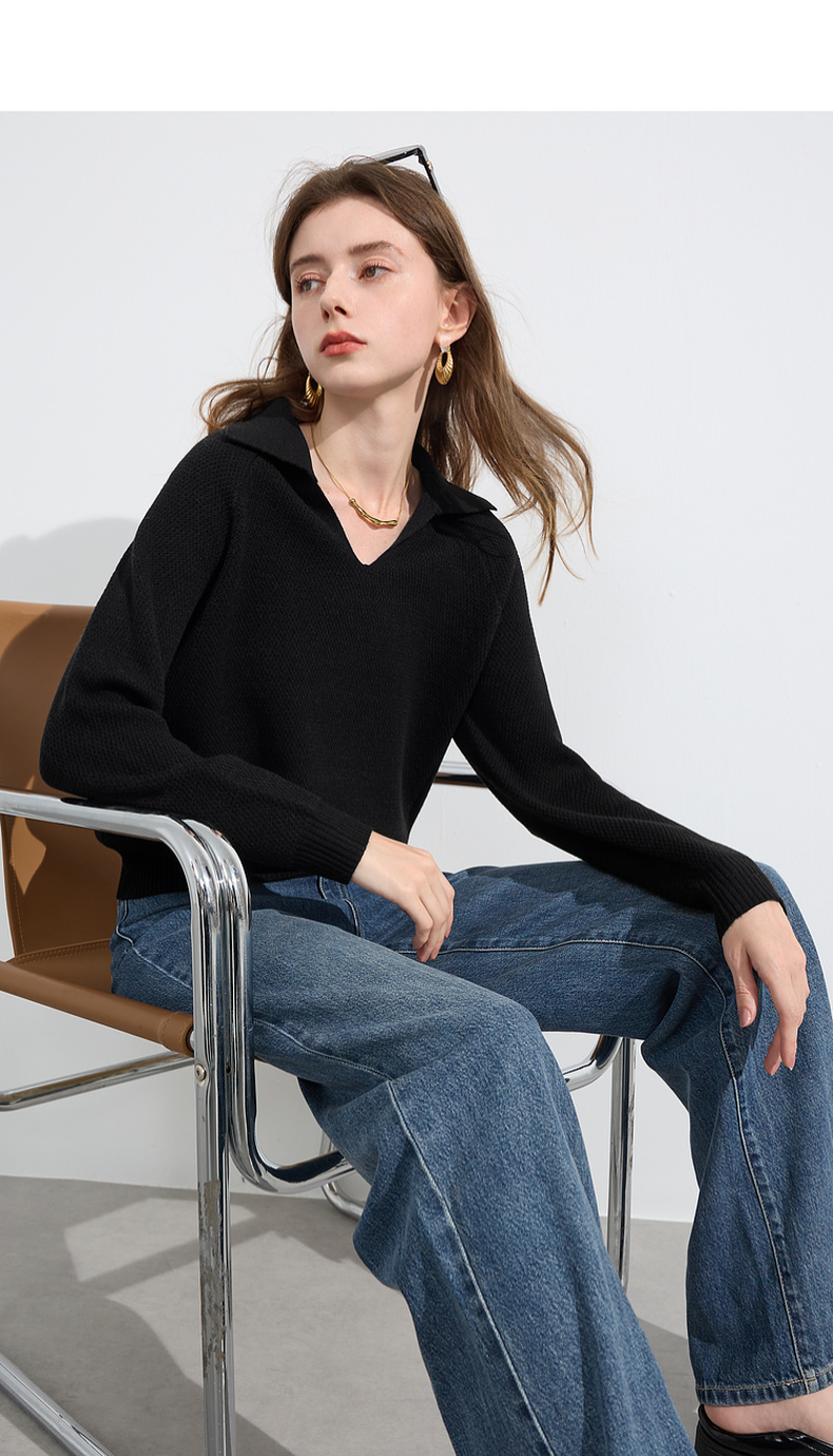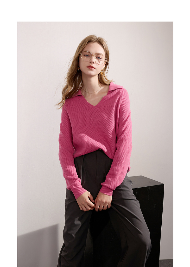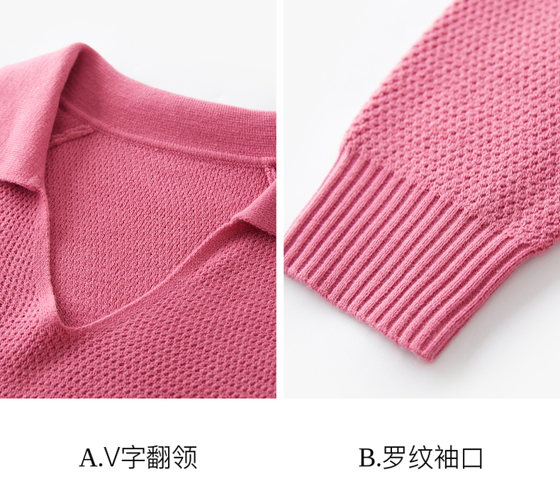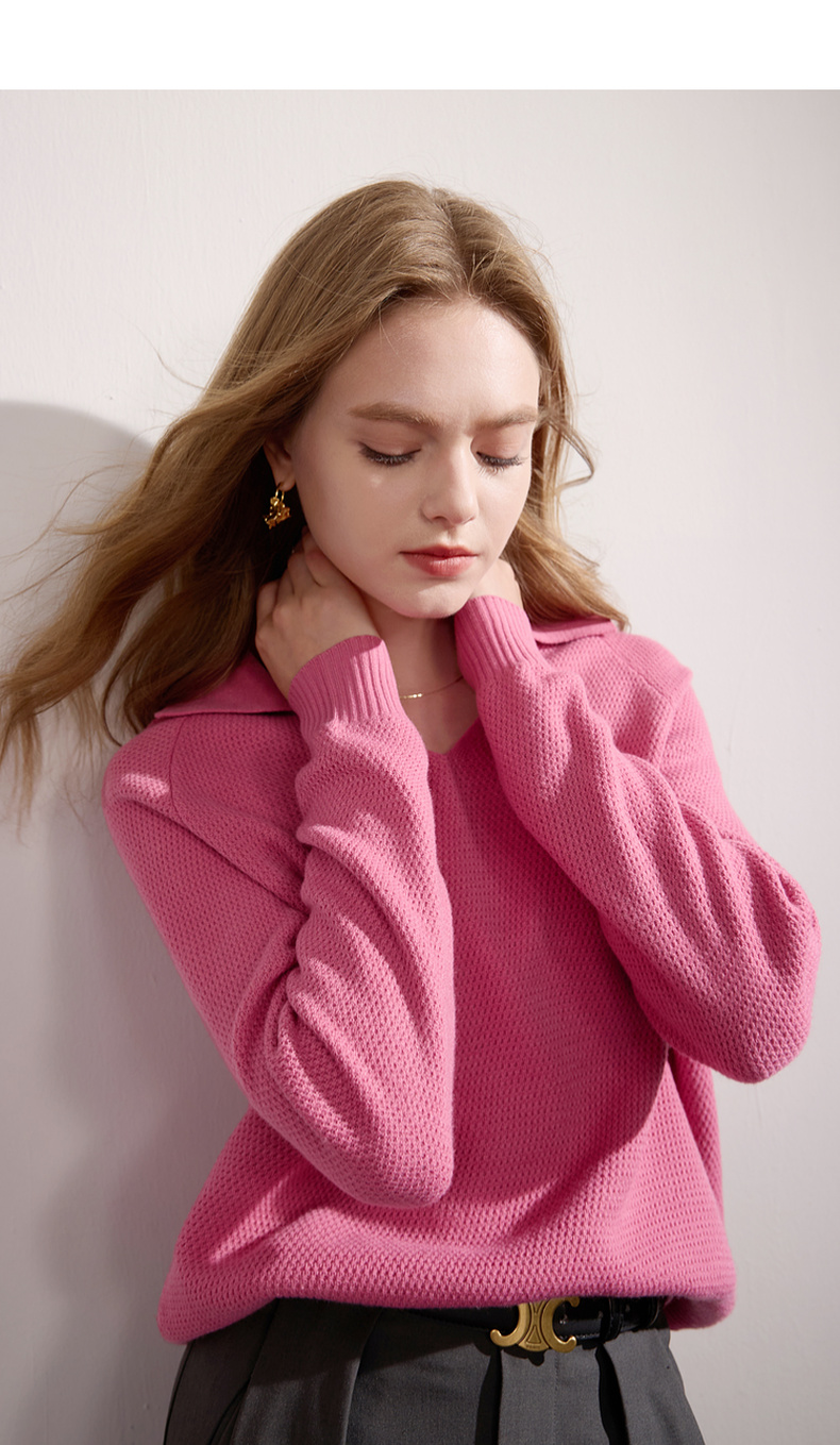 三彩2025冬季新款翻领针织衫慵懒宽松插肩袖毛衫套头衫显瘦女