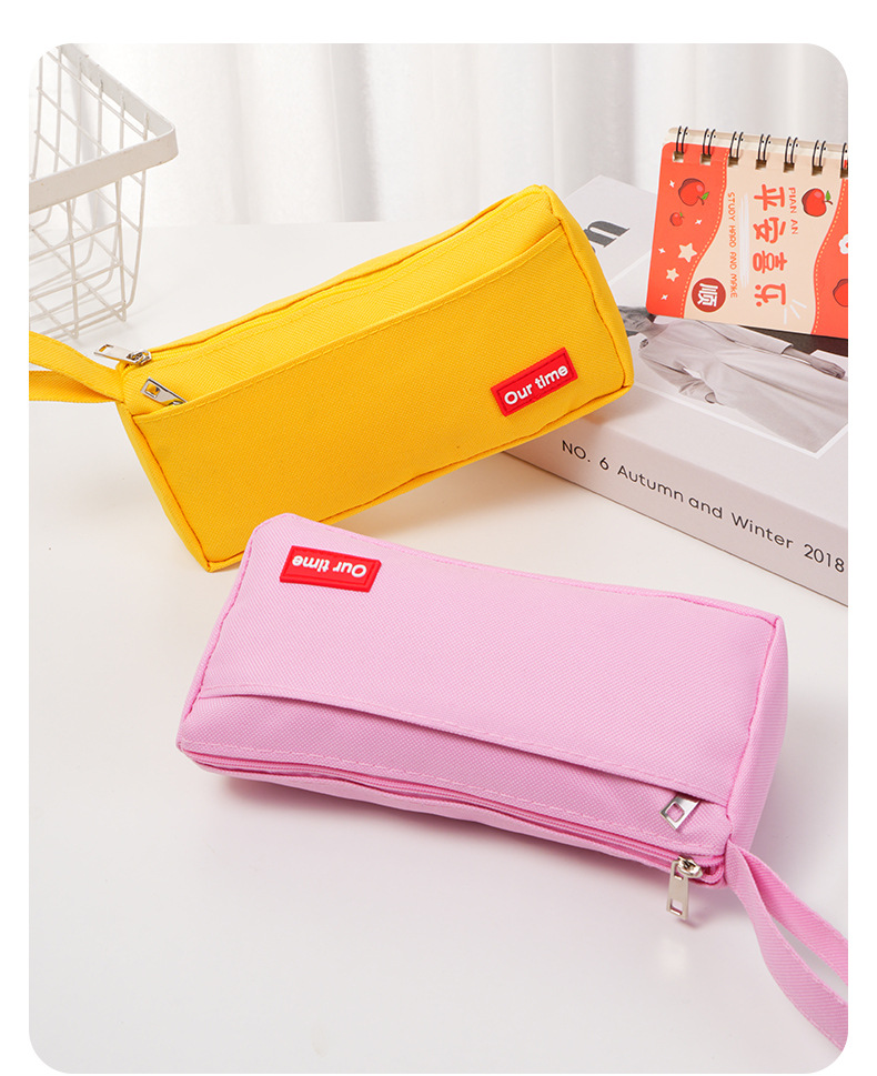 开学季福利!【任意2款】 升级加厚韩版儿童大容量牛津布双层大容量手提笔袋 简约牛津布双拉链笔袋文具袋文具