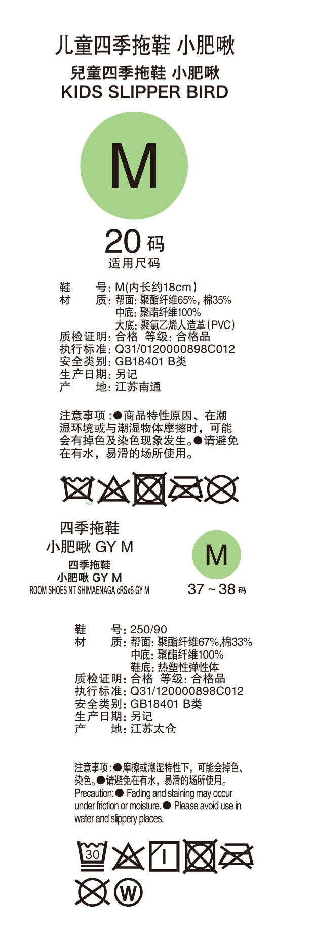 室内四季拖鞋儿童拖鞋卡通亲子拖鞋 小肥啾
