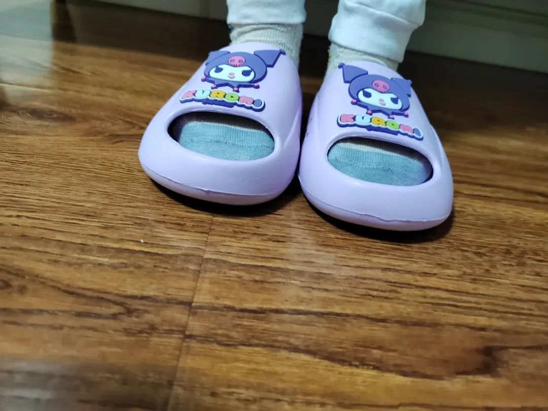 这款三丽鸥的拖鞋,我们拆快递的时候就爱上了,我们拿到的是库洛米。