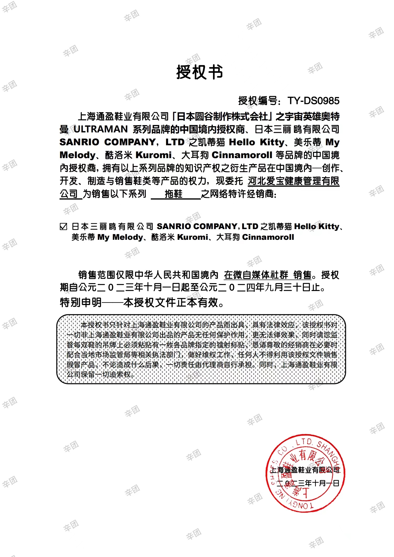 咱们所有这些卡通形象都是三丽鸥正版授权的,完全可以放心。(上面有授权书哦)