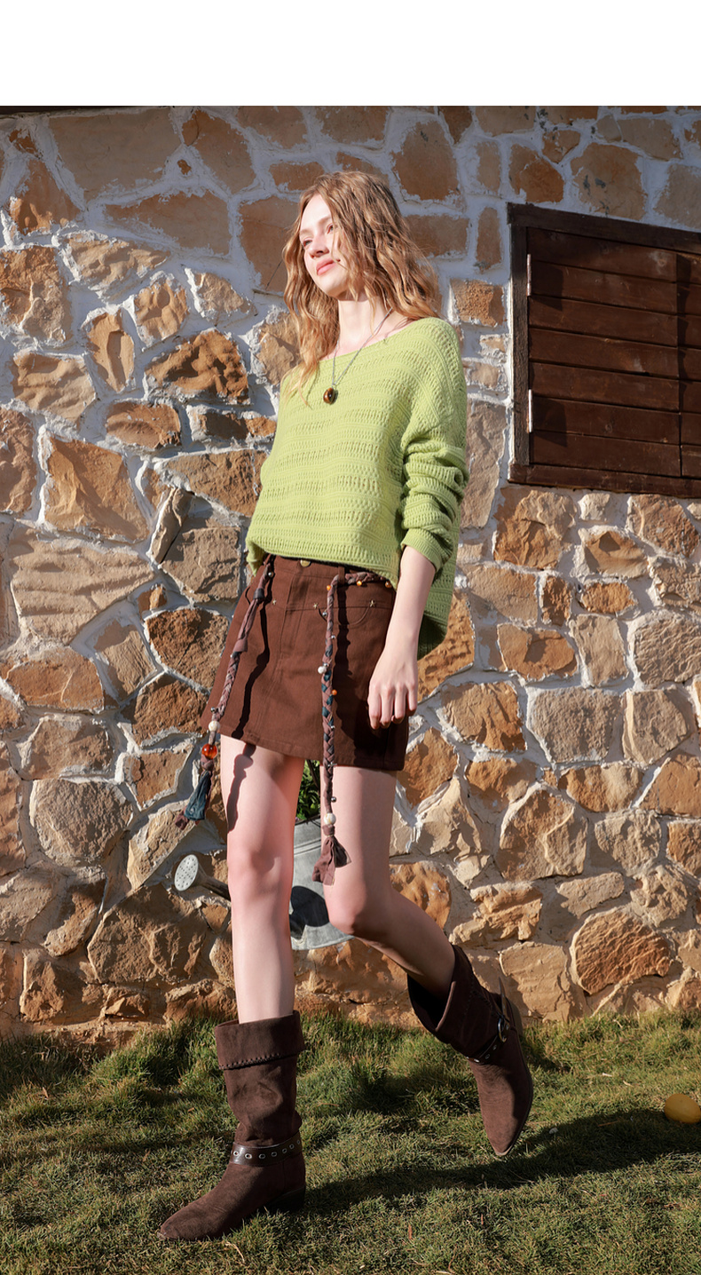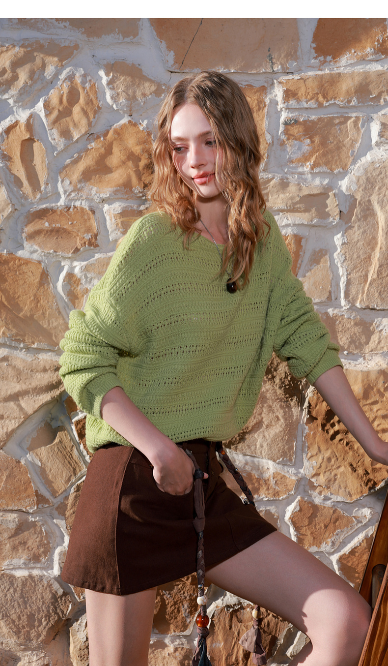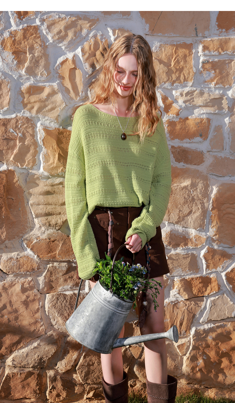 【绵羊毛】三彩2026春季新款宽松圆领长袖针织衫毛衫肌理感套头M