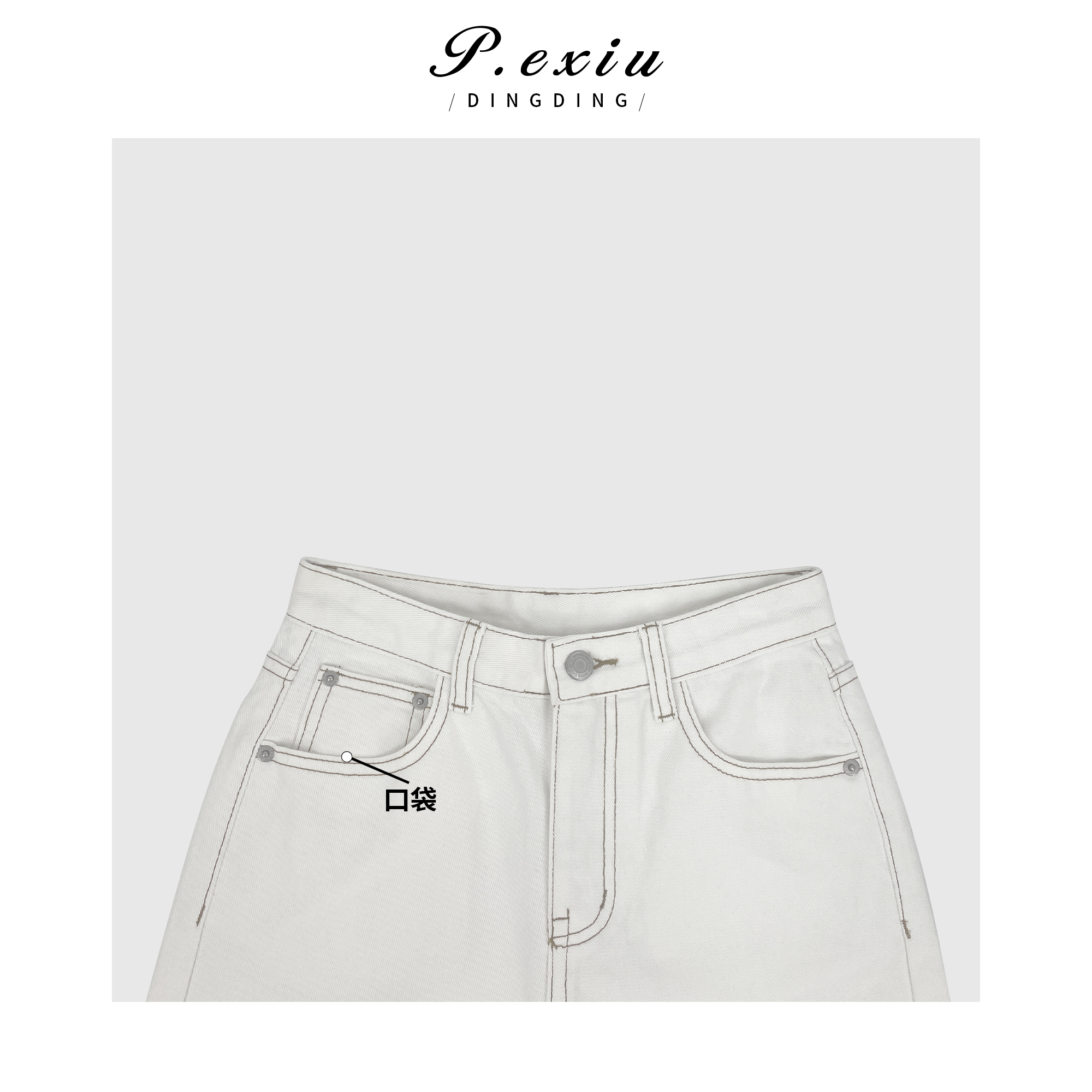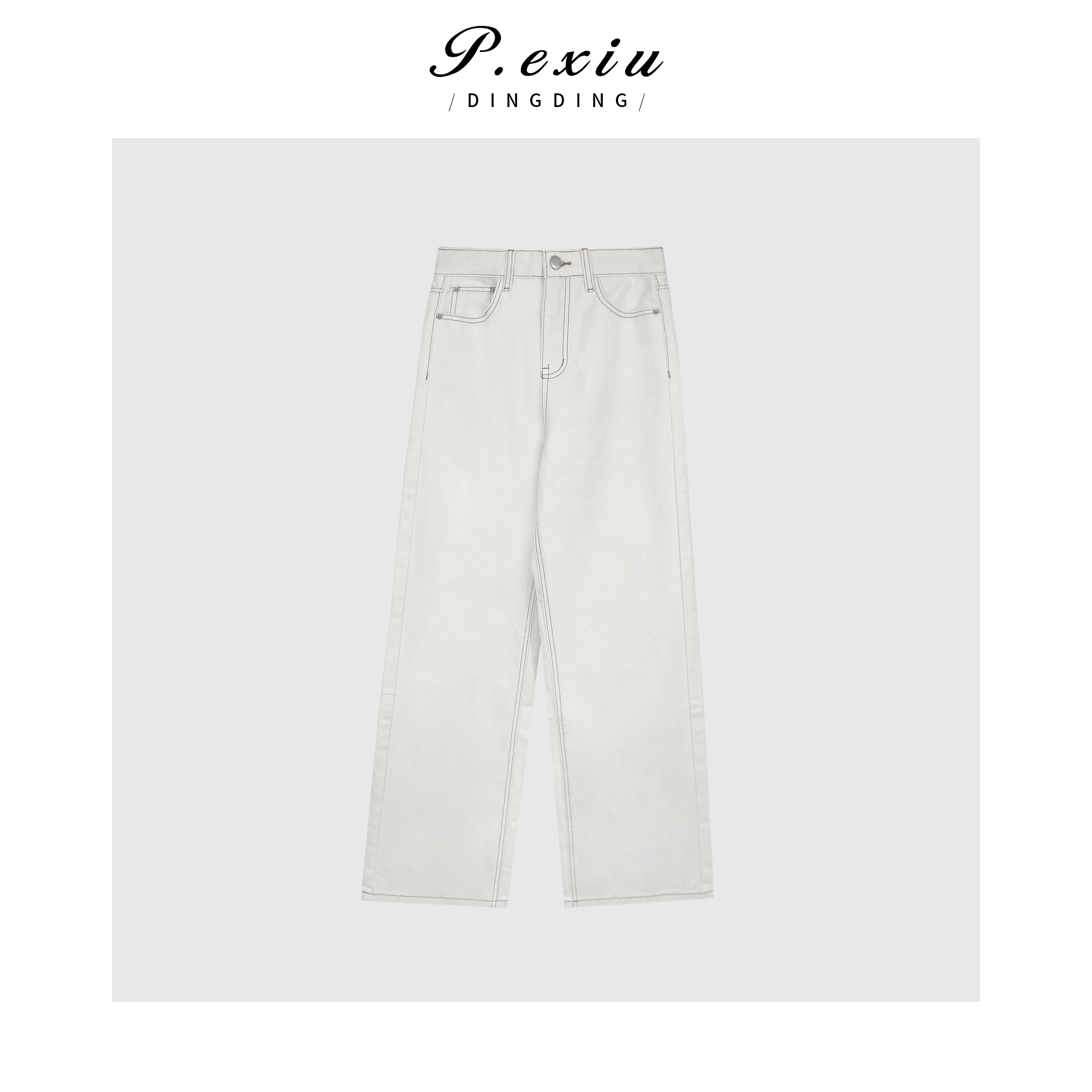 04-3潘依绣丁丁宠粉PanYiXiu/潘依绣100%棉明线设计感休闲百搭直筒牛仔裤 D6177