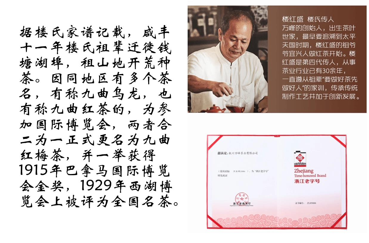 九曲红梅茶125g/罐,万峰九曲红梅茶产于杭州西湖区双灵村,采用西湖龙井群体种老茶树幼嫩芽叶为原料