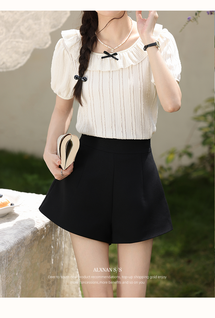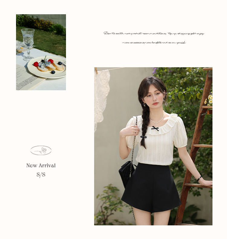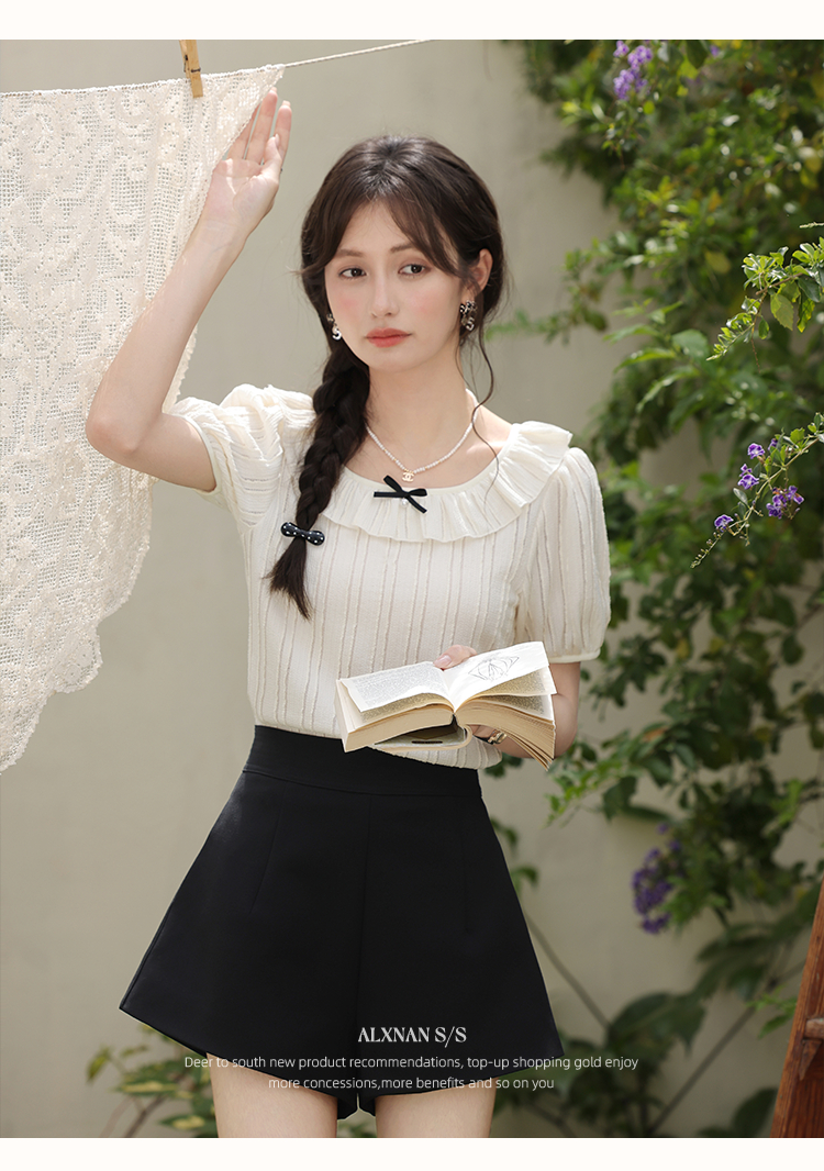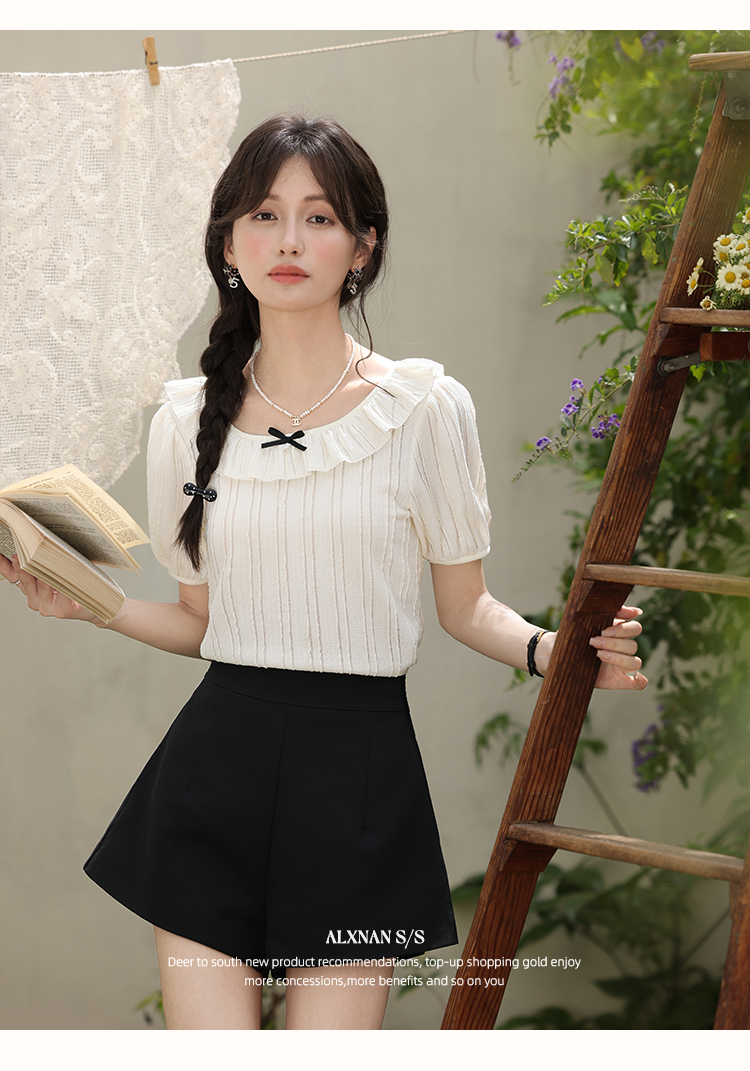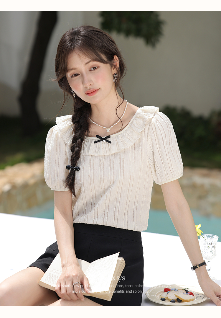 鹿向南「雾月手札」法式荷叶边拼接t恤女夏季新款设计感短袖上衣