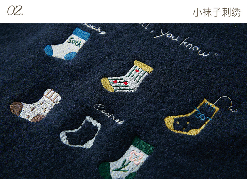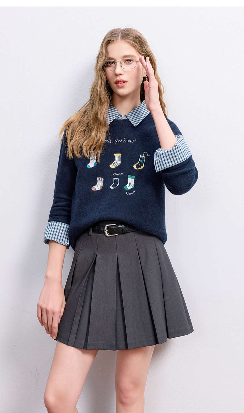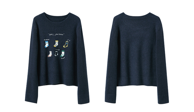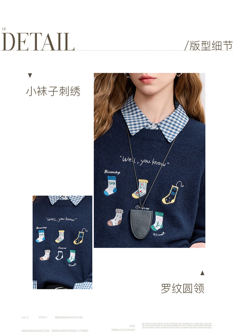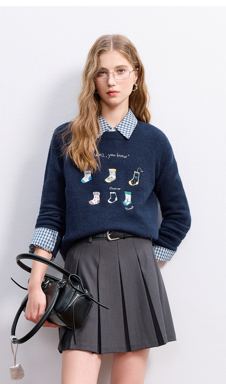 三彩2025冬季新款圆领刺绣字母针织衫长袖简约套头衫显瘦M