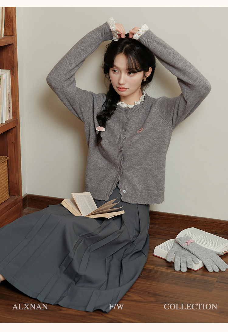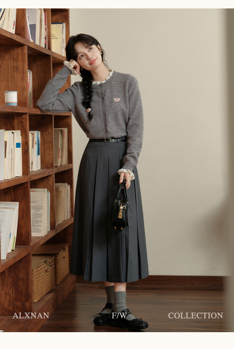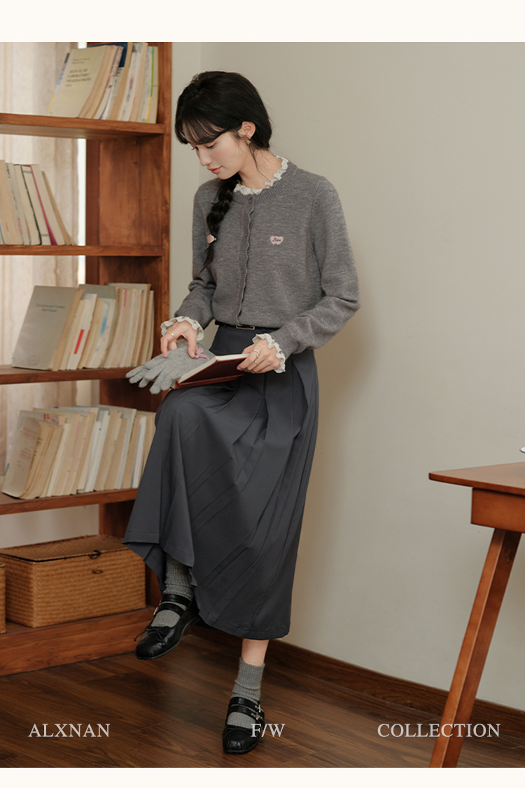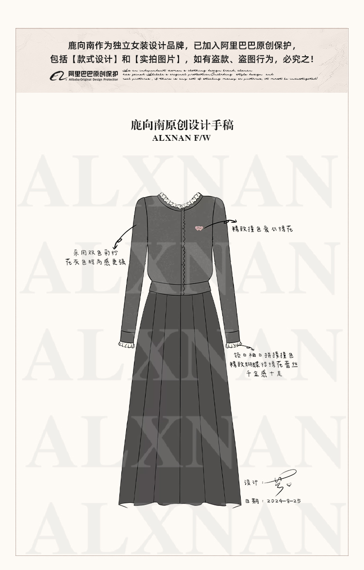 鹿向南「秋风日记」法式毛衣半身裙两件套2025秋冬季灰色时尚套装