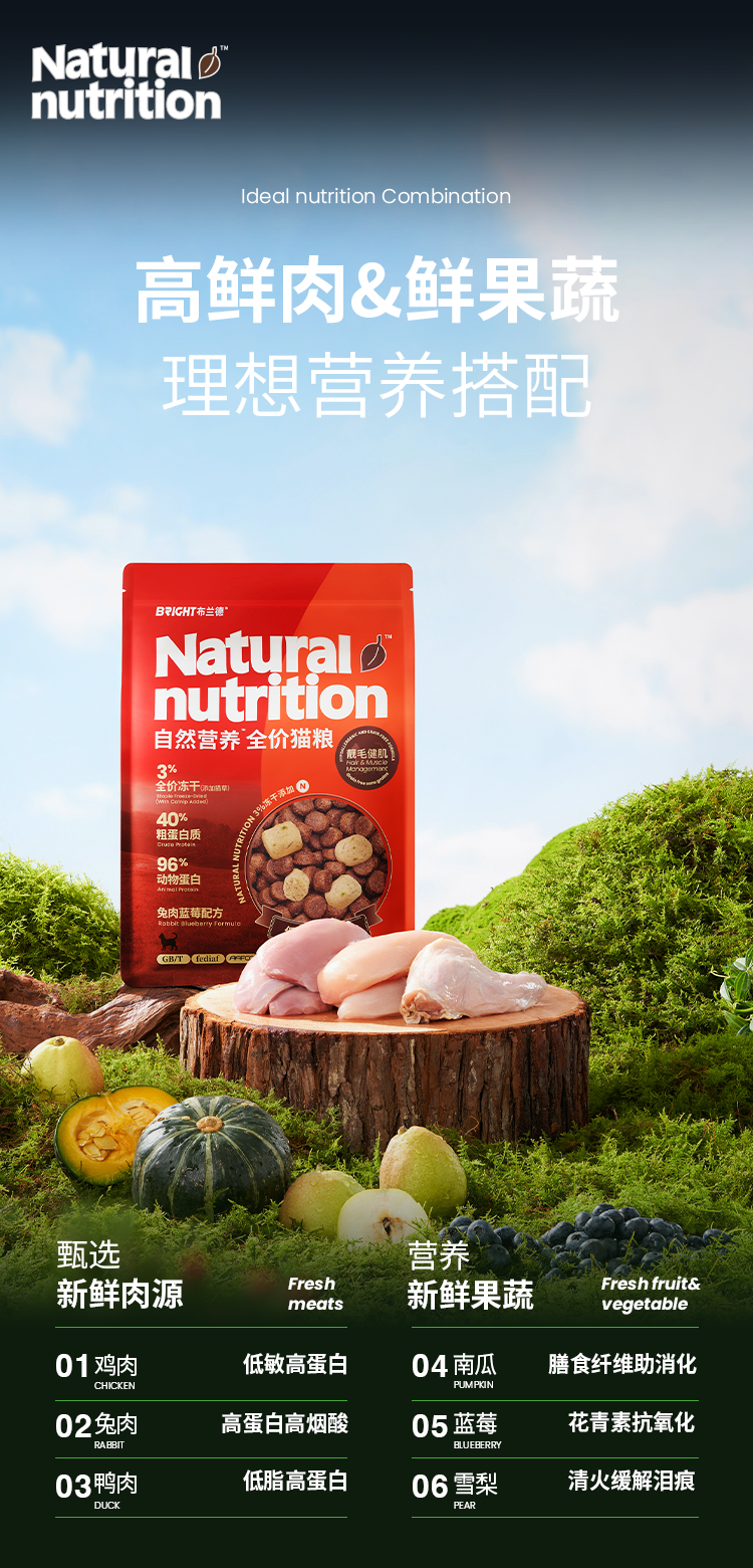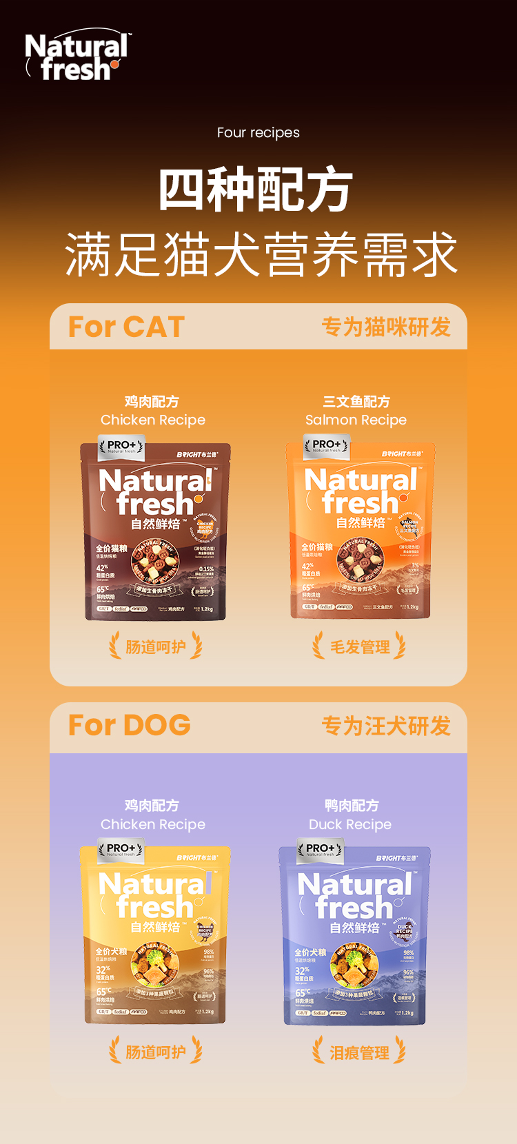 【试吃尝鲜】布兰德 自然鲜焙猫粮*2袋+自然营养猫粮试吃*2袋