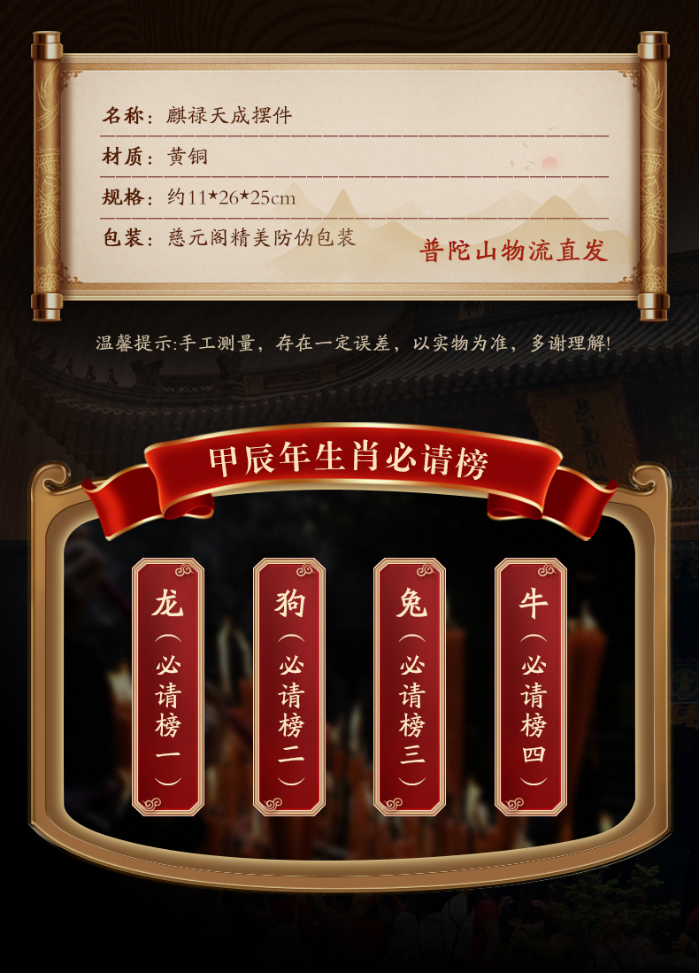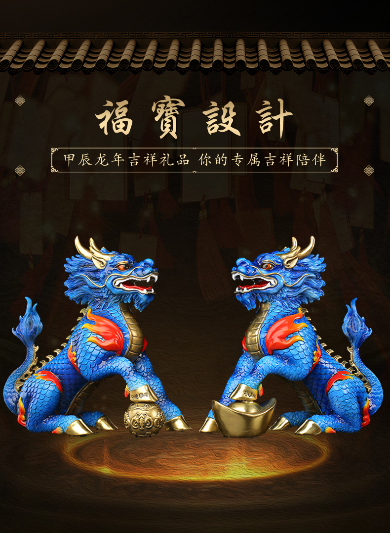 慈元阁定制麟禄天成摆件黄铜麒麟一对办公室家居卧室摆设装饰礼品