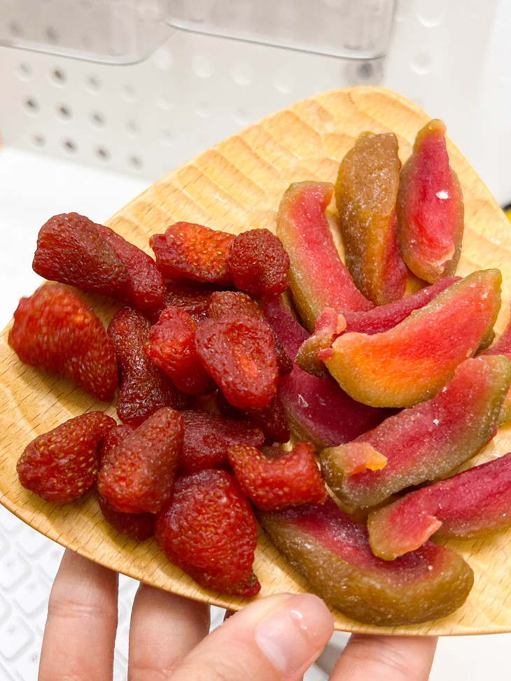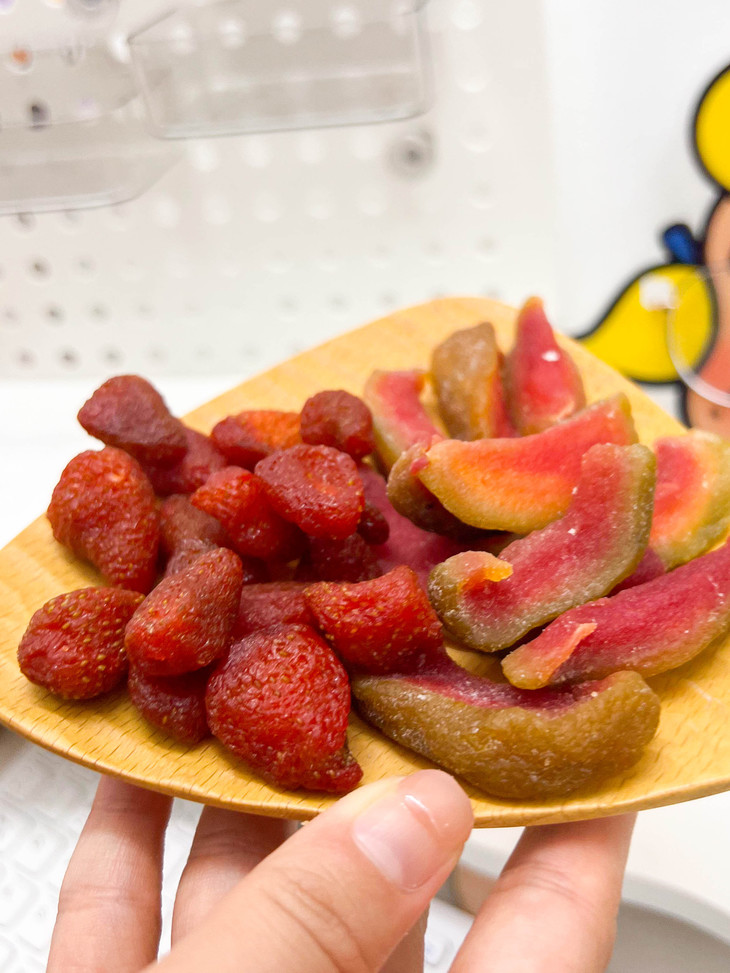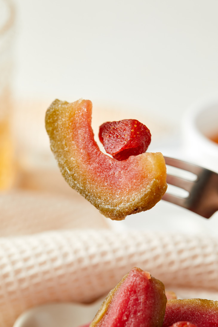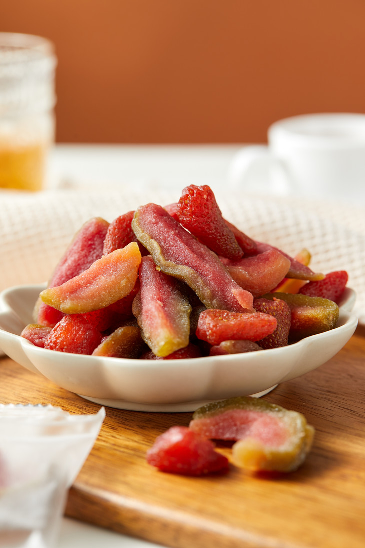 以前只知道草莓和芭乐单水果就挺好吃的了 没想到现在做果干,味道更胜一筹!! 软软糯糯的,真的是越嚼越香,根本停不下来嘛! 吃完满嘴都是芭乐的果香味,吃起来特别上头! 而且草莓和芭乐都还是高维C、高膳食纤维的水果