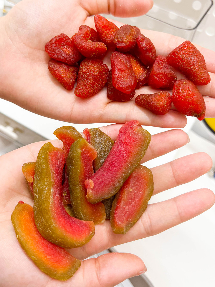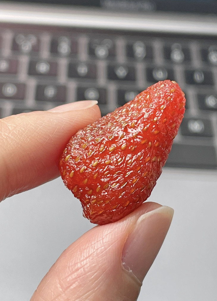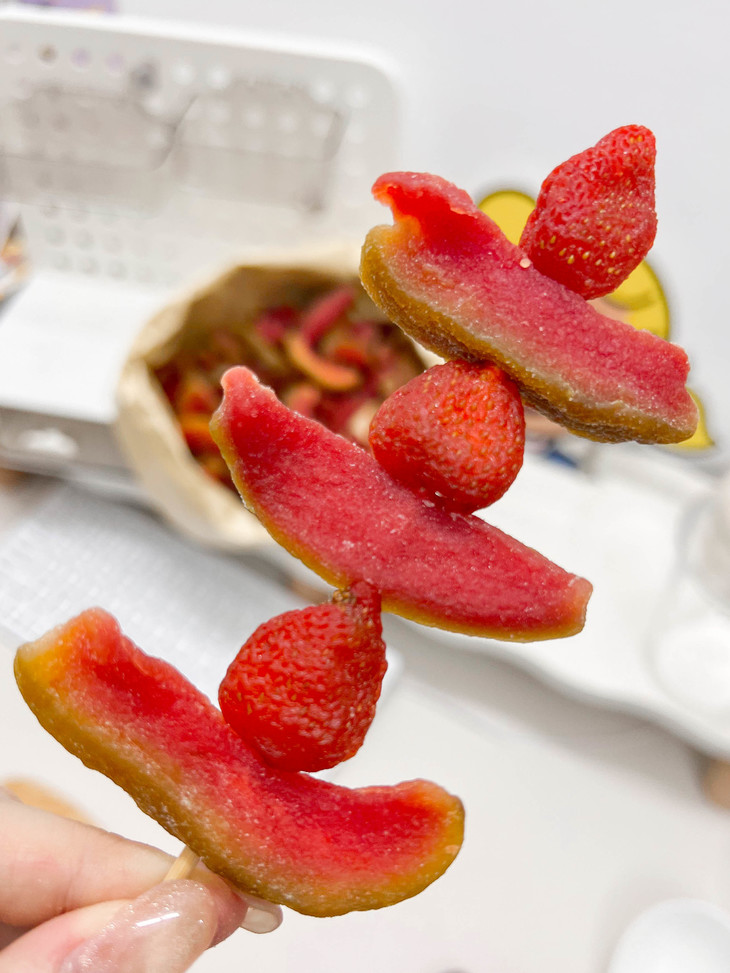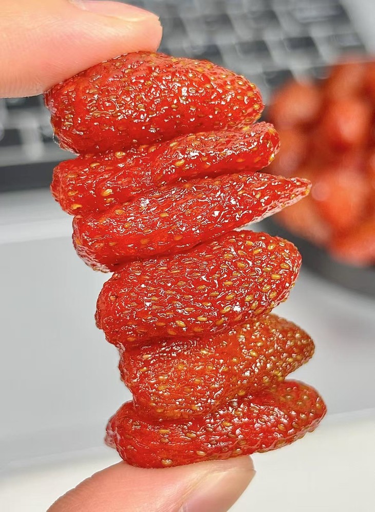 大家印象里的果干制品可能是干巴巴的, 但草莓芭乐干完全不同。 为了更好还原水果本身的味道 果然U品是采用24小时低温慢烘的 这样出来的过干软糯香甜,QQ弹弹,还是妥妥的“奢侈品”。